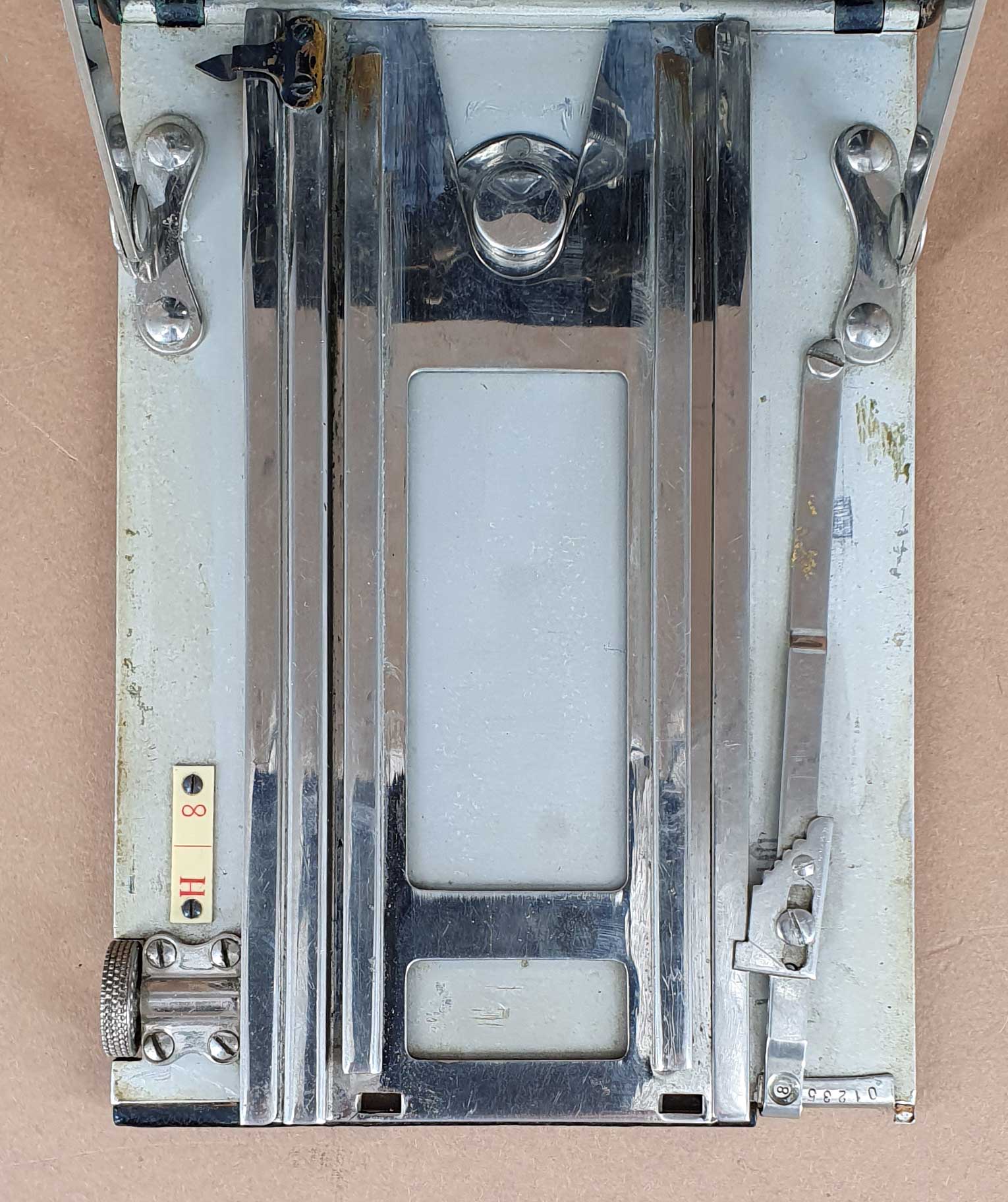 sehr interessante Kamera, vielen Dank fürs Zeigen! Über die ungewöhnliche Entfernungseinstellung hinaus finde ich die Gestaltung der Standarte bemerkenswert – diese gegossenen U-Standarten sind ja zumeist schwarz emailliert. Wie ist denn die Oberfläche hier ausgeführt? Die Farbe scheint ja nicht einfach entfernt worden zu sein; ist das der Rohzustand, oder ist die Standarte vernickelt?