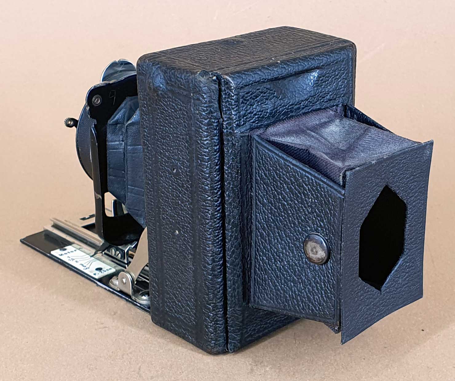 Das Gehäuse und der Laufboden der Kamera im Aufnahmeformat 4,5x6 bestehen aus Leichtmetall und sind außen schwarz beledert. Die Kamera besitzt einen einfachen Auszug.