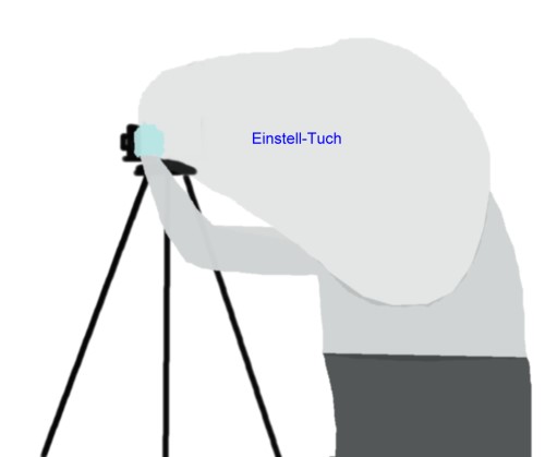 gibt man im BZF das Suchwort "Einstelltuch" ein, gab es bisher Null Treffer. Dabei war zu Plattenkamera-Zeiten mit Mattscheiben-Sucherbild-Betrachtung (zumindest bei damaligen ernsthaften Fotografen) oft die Notwendigkeit gegeben das Mattscheibenbild bei hellem Licht trotz Ausklappschacht mehr vom Umgebungslicht zu trennen.