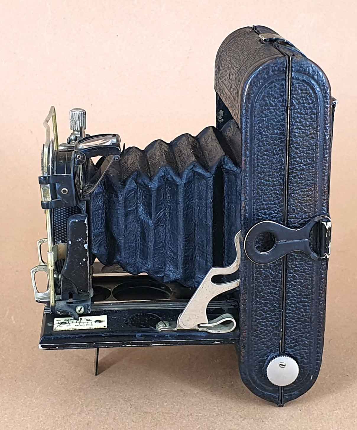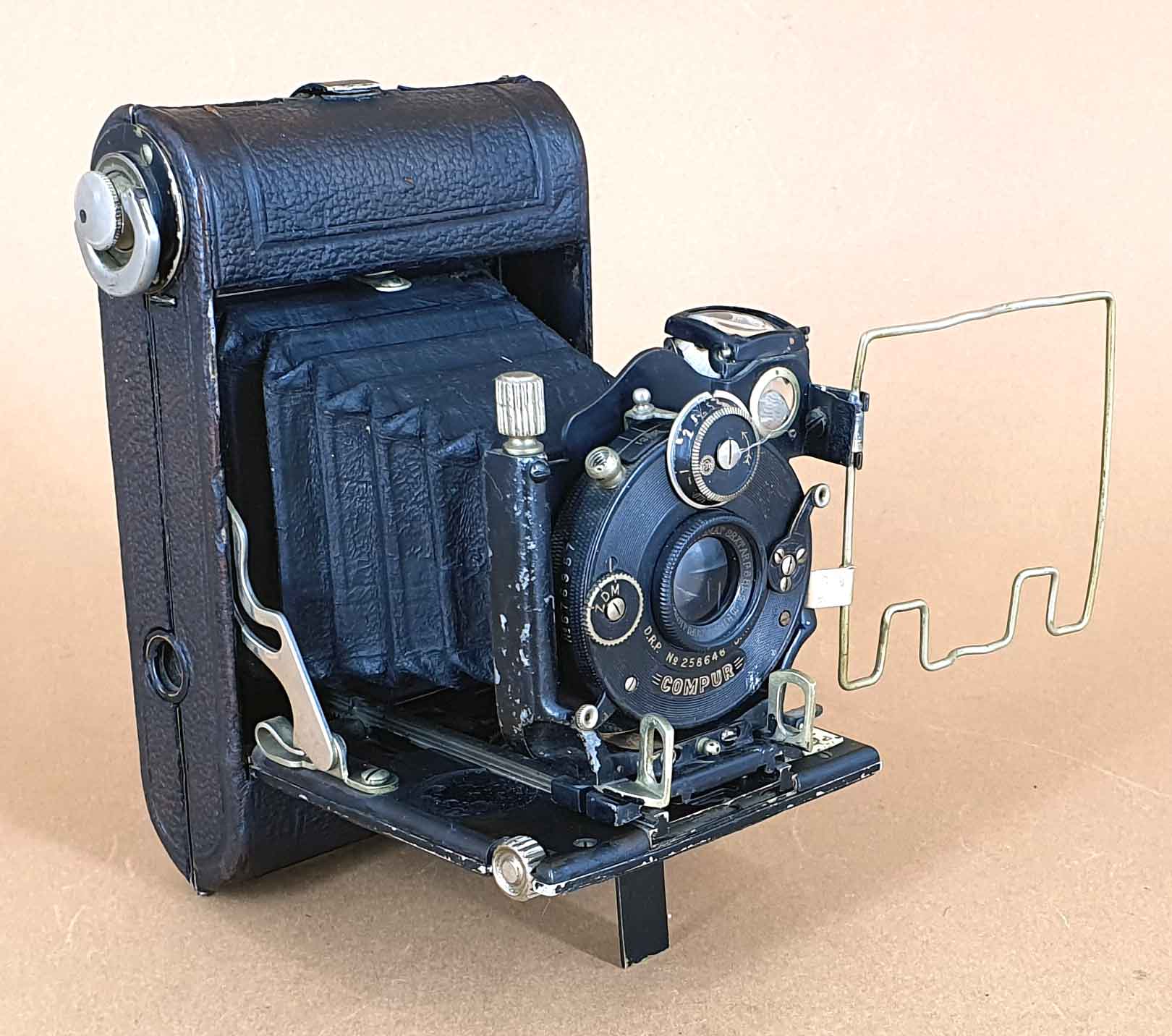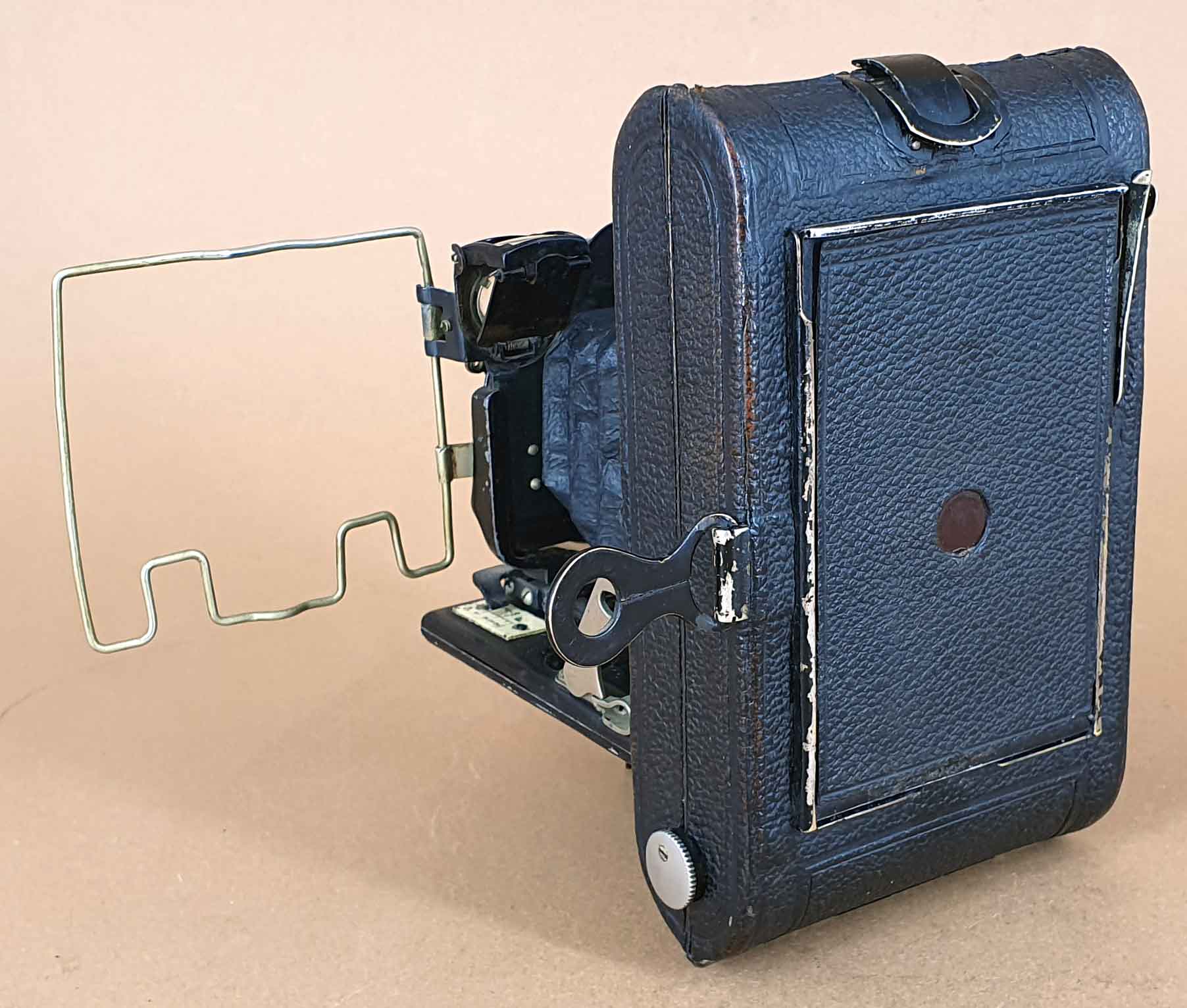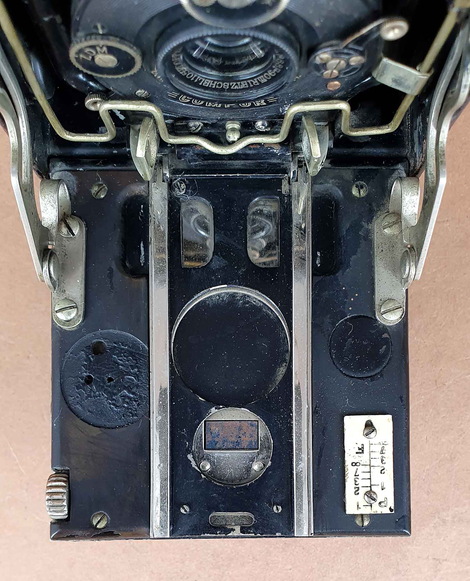 Das vorliegende Exemplar ist mit einem Rietzschel Doppelanastigmat *(S)*tar 6.8/9 cm im Compur-Verschluss ausgestattet. Der Verschluss datiert 1922. Die Kamera besaß ursprünglich auch eine Beschriftungsplakette auf dem Laufboden, die beim vorliegenden Exemplar aber verlorengegangen ist.