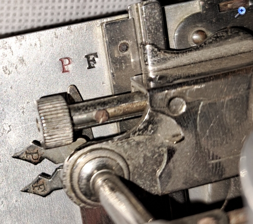 Auf dem Laufboden und dem Einstellskala-Anzeiger befinden sich die Prägung PF
