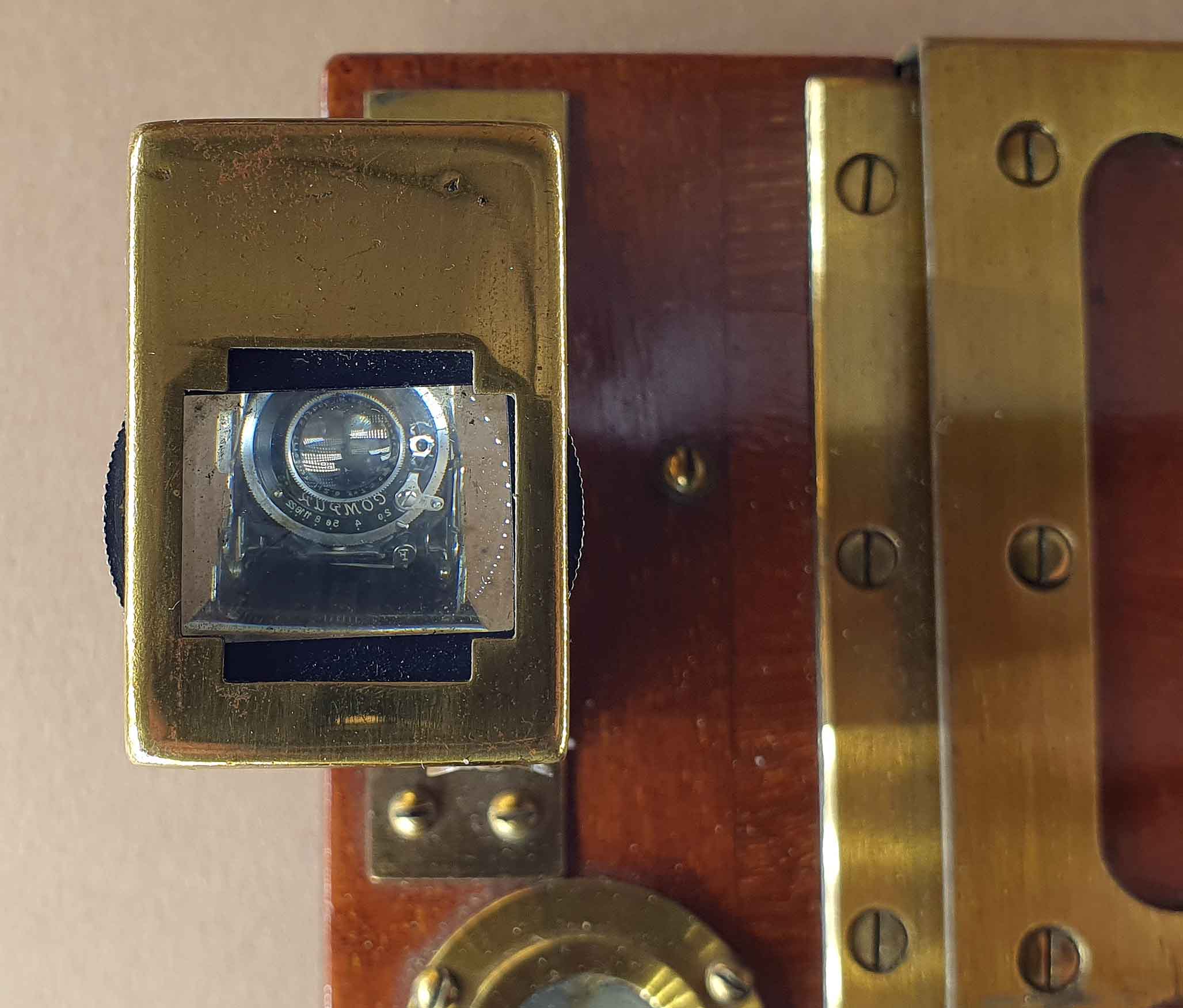 interessante und schöne Kamera, besonders die Frontplattenverstellung. Was den Messington angeht: Der wird meist von der Schutzlackierung erzeugt. Unlackiertes Messing würde nach mehr als einhundert Jahren nicht mehr blank aussehen. Größtenteils hat man schnell trocknenden Zaponlack als Korrosionsschutz verwendet, der häufig auch Pigmente enthielt, um dem Messing erstmal einen Ton zu geben. Wirklich blankes Messing wirkt sehr hell, ihm fehlt der warme Ton. Du kannst ja mal an den angelaufenen Stellen mit einer starken Lupe oder einem Stereomikroskop nachsehen. Meist ist hier etwas Zaponlack abgesplittert.
