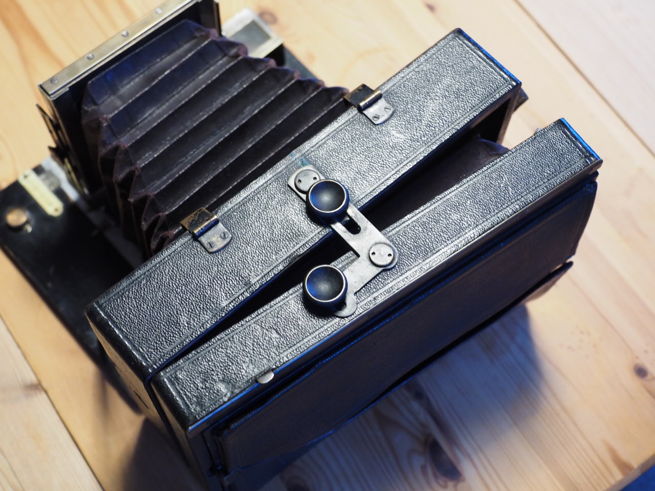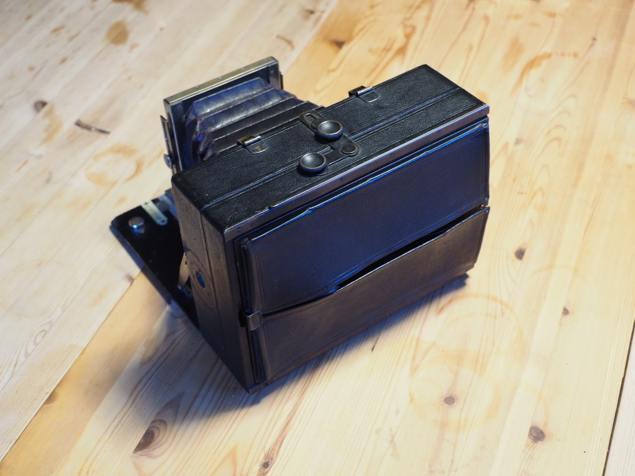 Ich denke mal, wir sind damit irgendwo um 1900 herum, vielleicht auch später. Wenn ich Kassetten dafür finde, passe ich ein geeignetes Objektiv an und benutze die Kamera, sie ist sehr klein und leicht für ihr Format und mit der verschwenkbaren Rückwand gut für Landschaftsaufnahmen geeignet. Erstmal bin ich für jeden Hinweis dankbar.