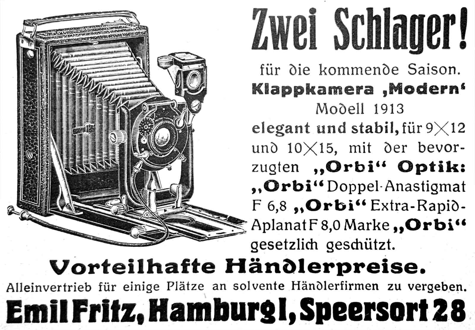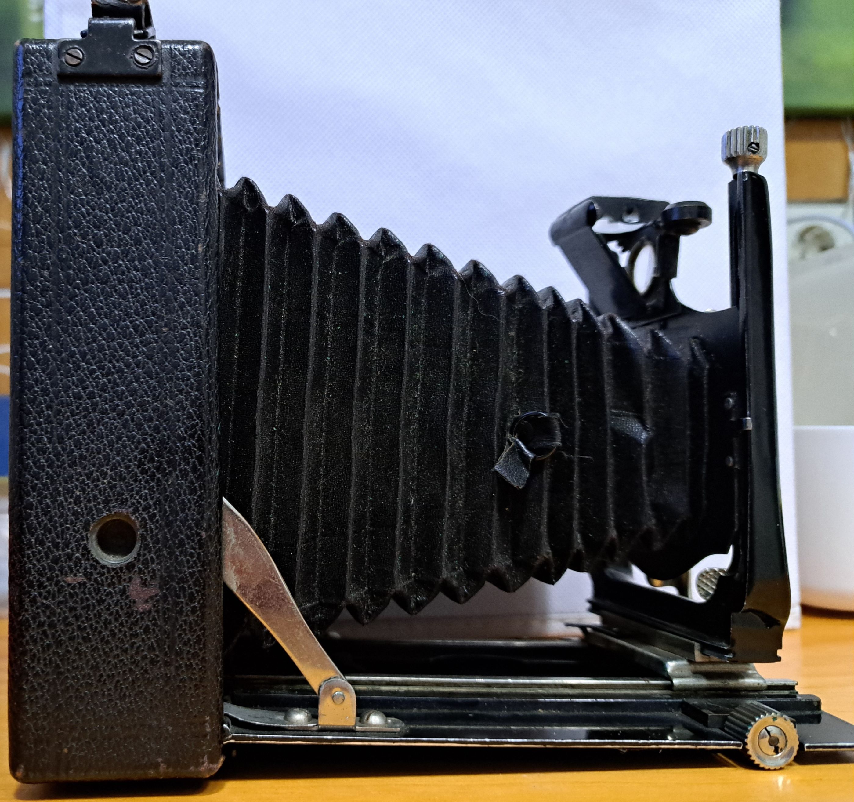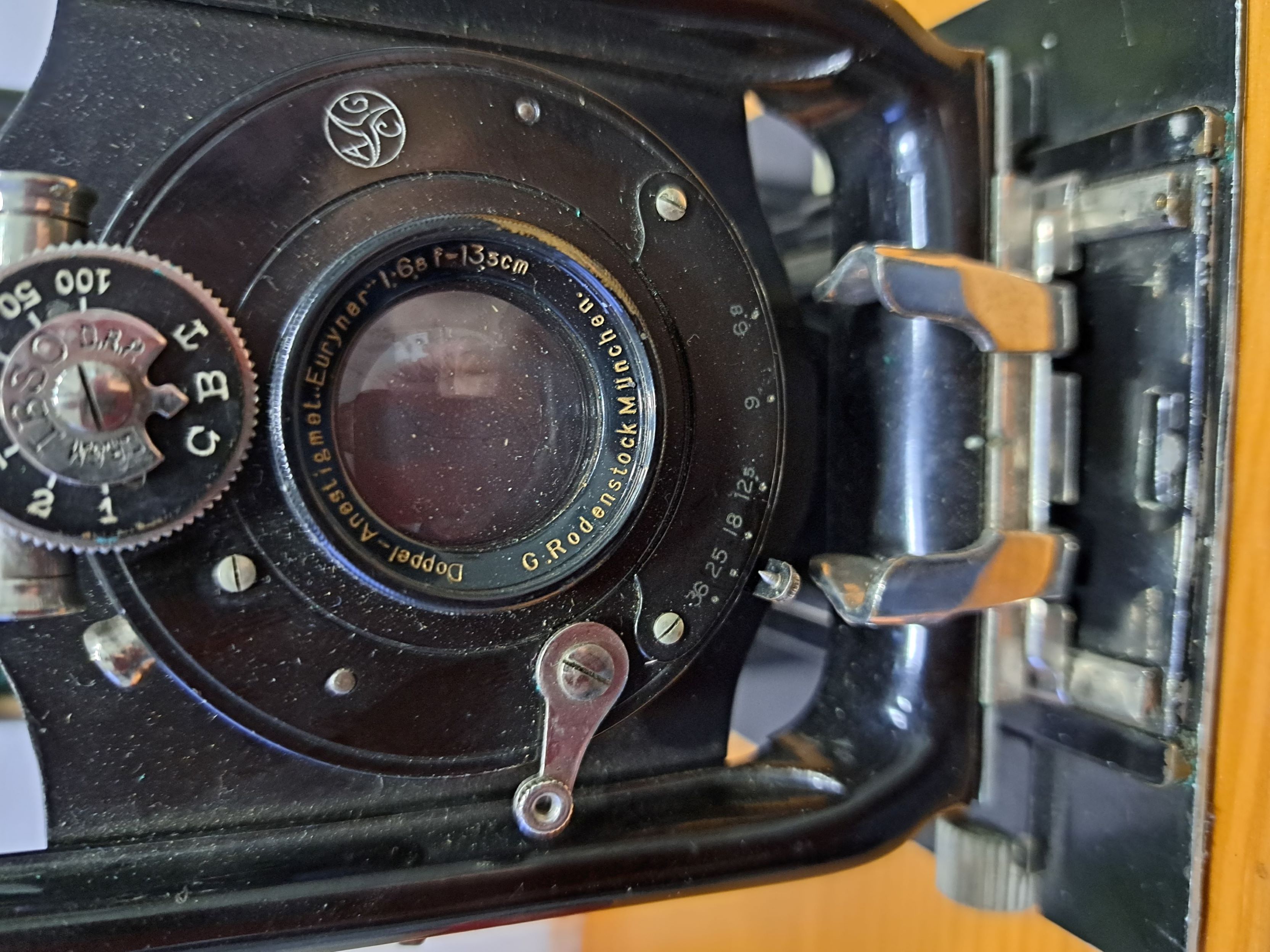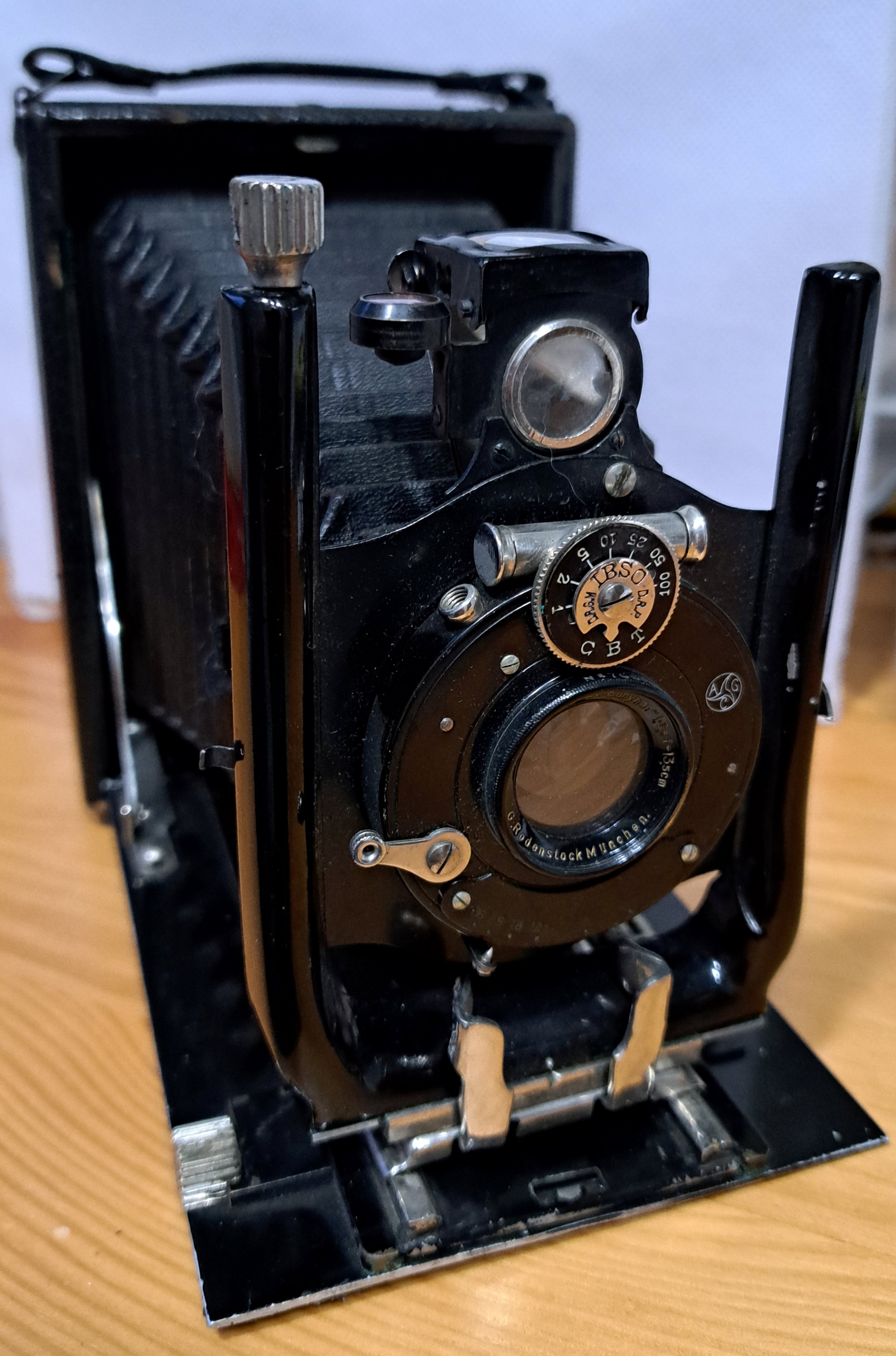 heute habe ich eine Plattenkamera mit der Bezeichnung "AGC mit G. Rodenstock München Doppel-Anastigmat Eurynar 6,8/135mm Klappkamera" bekommen. AGC bezieht sich auf den Verschluss, ansonsten finde ich keine Information zum Hersteller. Kann man anhand der Spreizen und der Handhabe Rückschlüsse zum Hersteller ziehen?