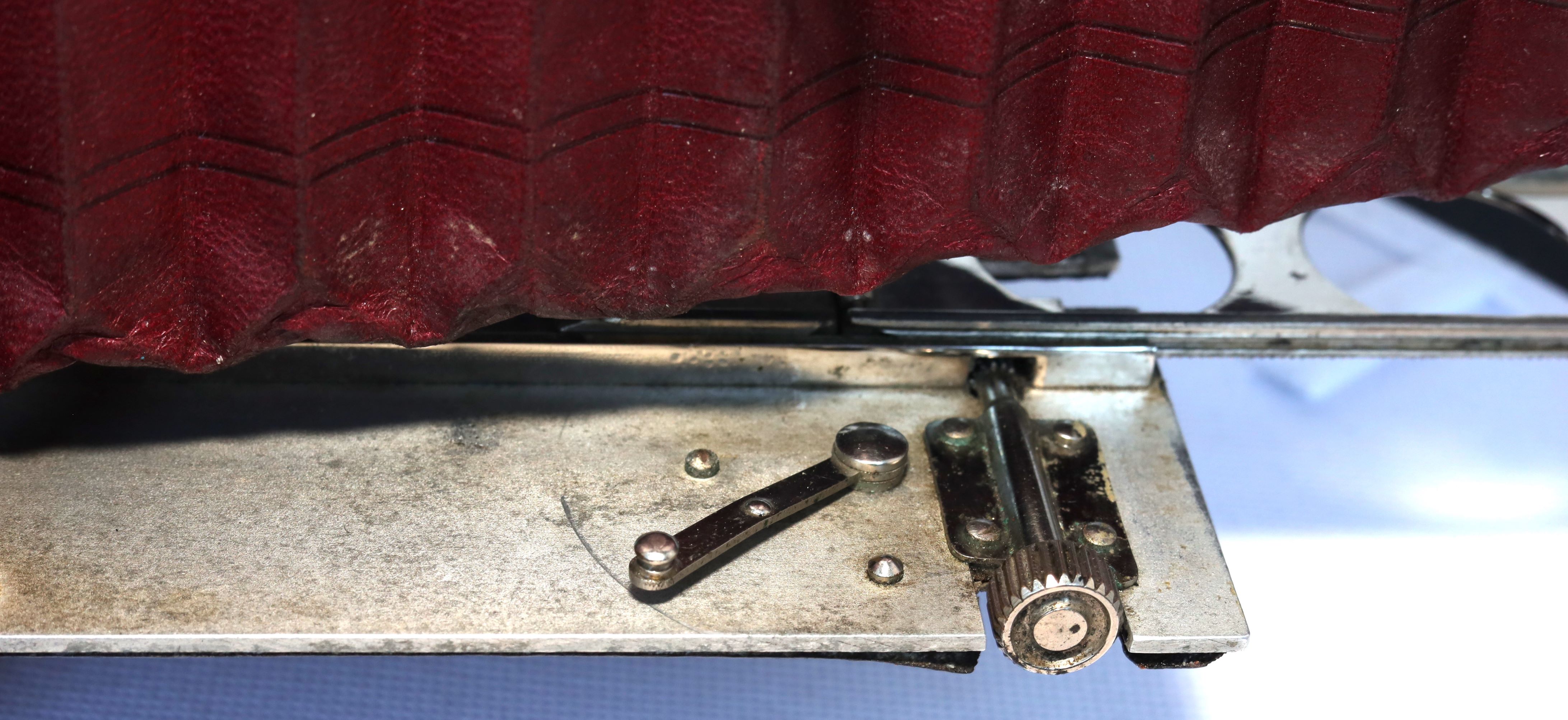 Aus der rechten Seite des Laufbodens bedindet sich ein zu verschiebendes Hebelchen, dessen Funktion sich mir nicht erschließt.