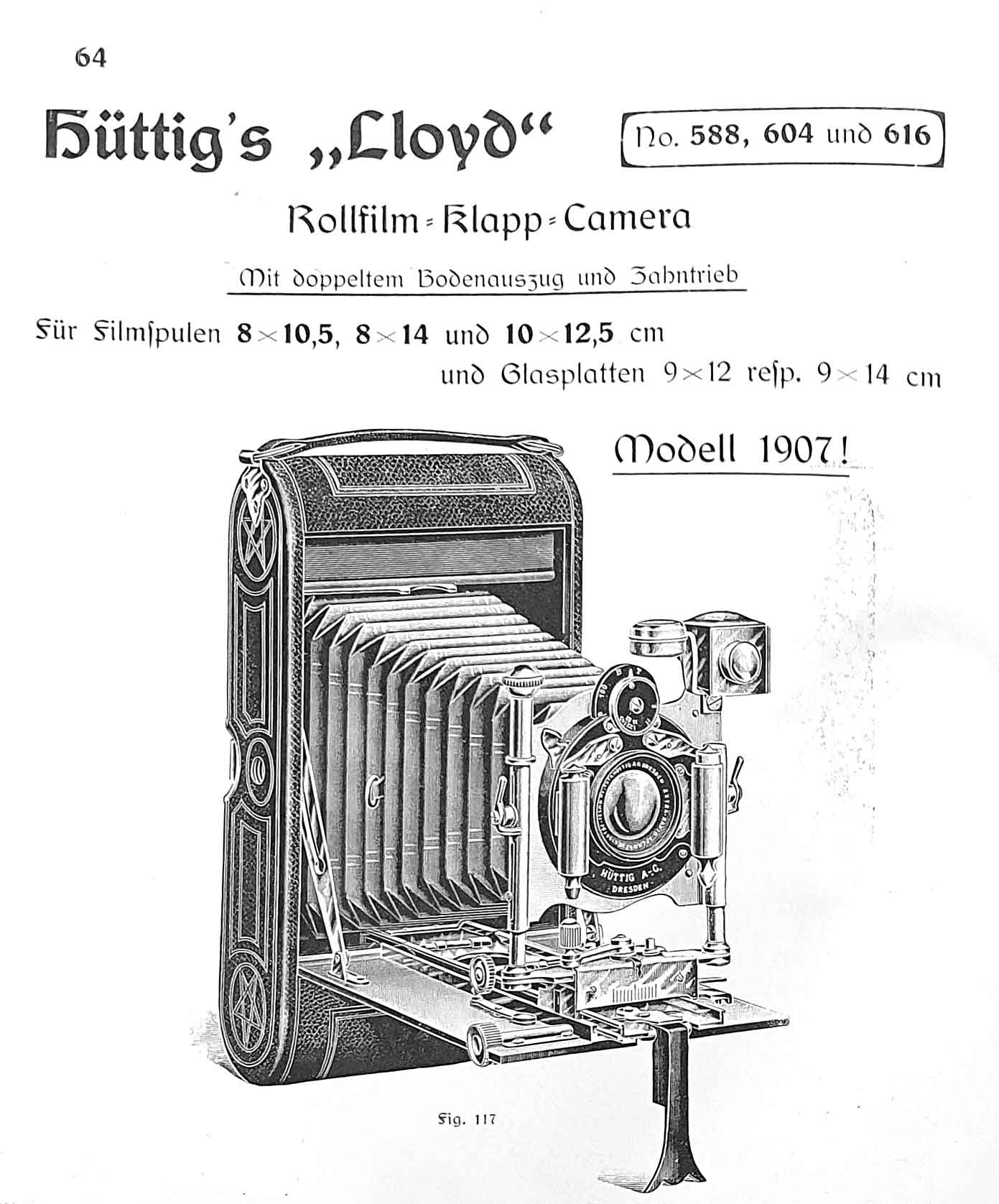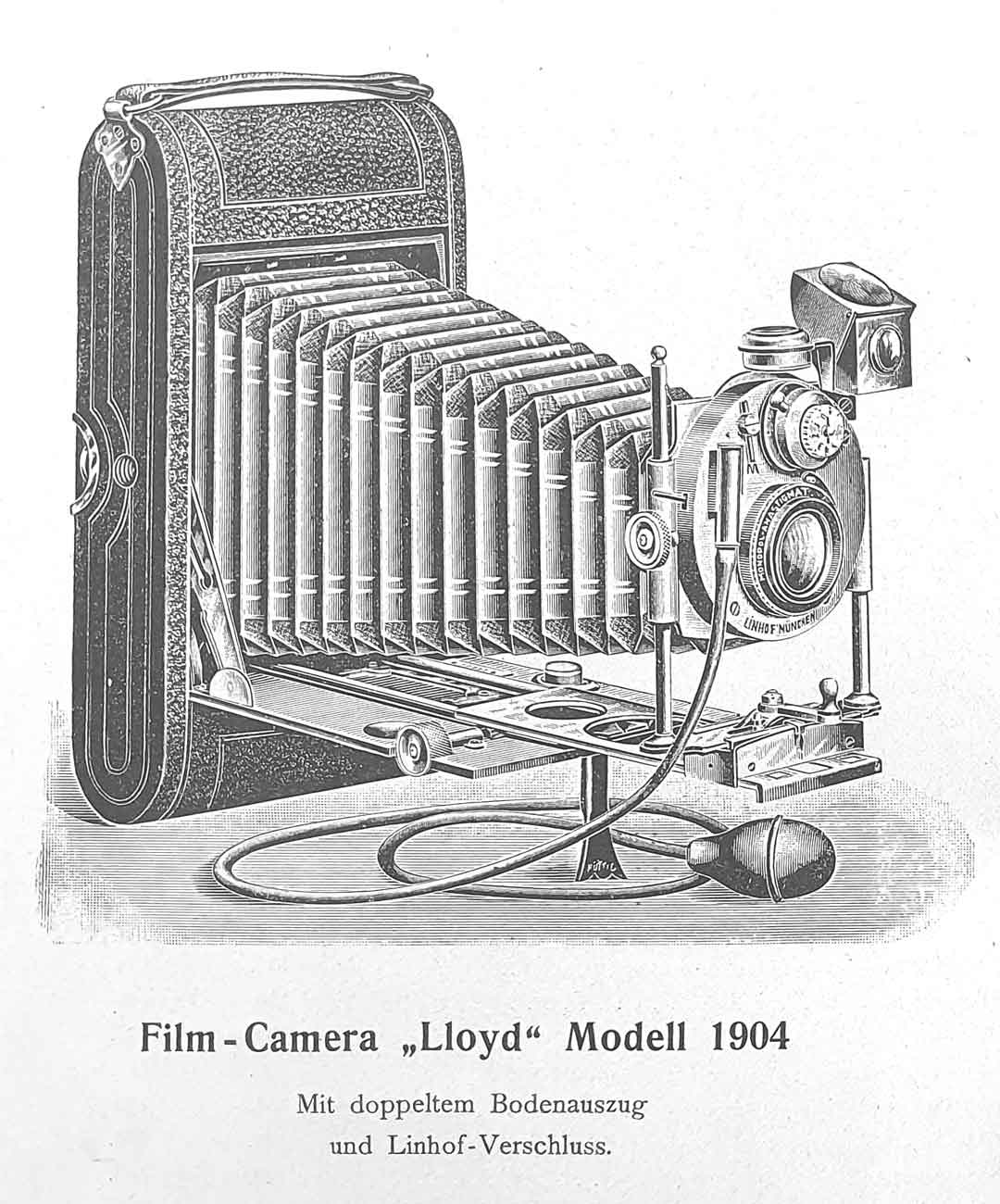 die schöne Lloyd mit dem Linhof-Verschluss ist mit beim online-Auktionshaus auch ins Auge gefallen. Die Kamera entspricht abgesehen vom Verschluss der Hüttig Lloyd No. 588 Modell 1907.