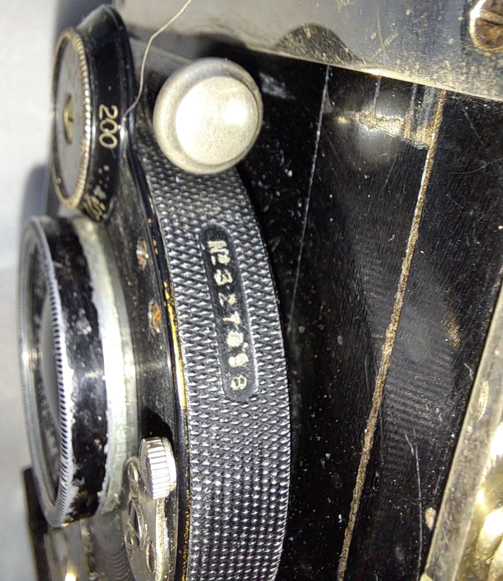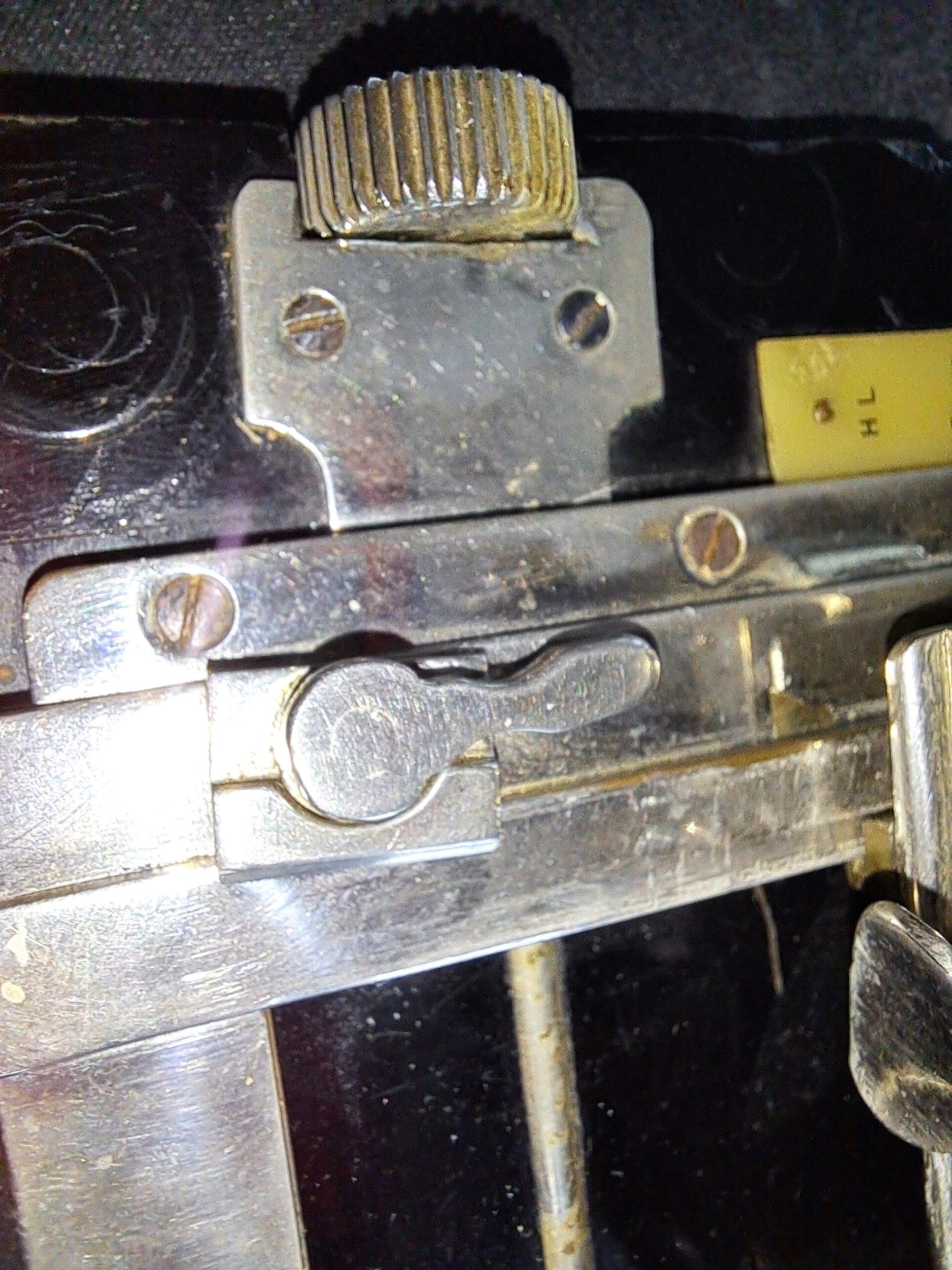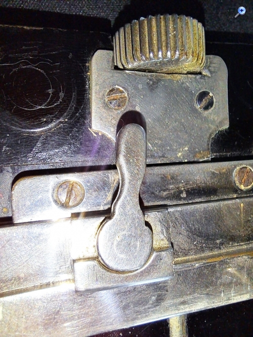 Auf dem Laufboden befinden sich drei Skalen für drei Brennweiten und Abdrücke eines vorher vorhandenen Brillantsucher. An der Laufschiene ist ein Hebelchen angebracht, das sich radial bewegen lässt, dessen Funktion ich aber nicht zuordnen kann. Die Handhaben sind leicht gebogen und glatt.