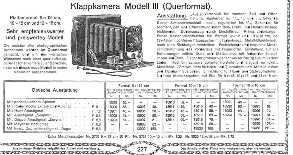 Könnte es sein, dass Stukenbrok - ein Versandhaus - Kameras von Bülter & Stammer vertrieb. In einem Katalog aus dem Jahr 1912 von Stukenbrok - ehemals Fahradproduzent und dann Versandhandel entdeckte ich "meine neue Errungenschaft auf Seite 227.