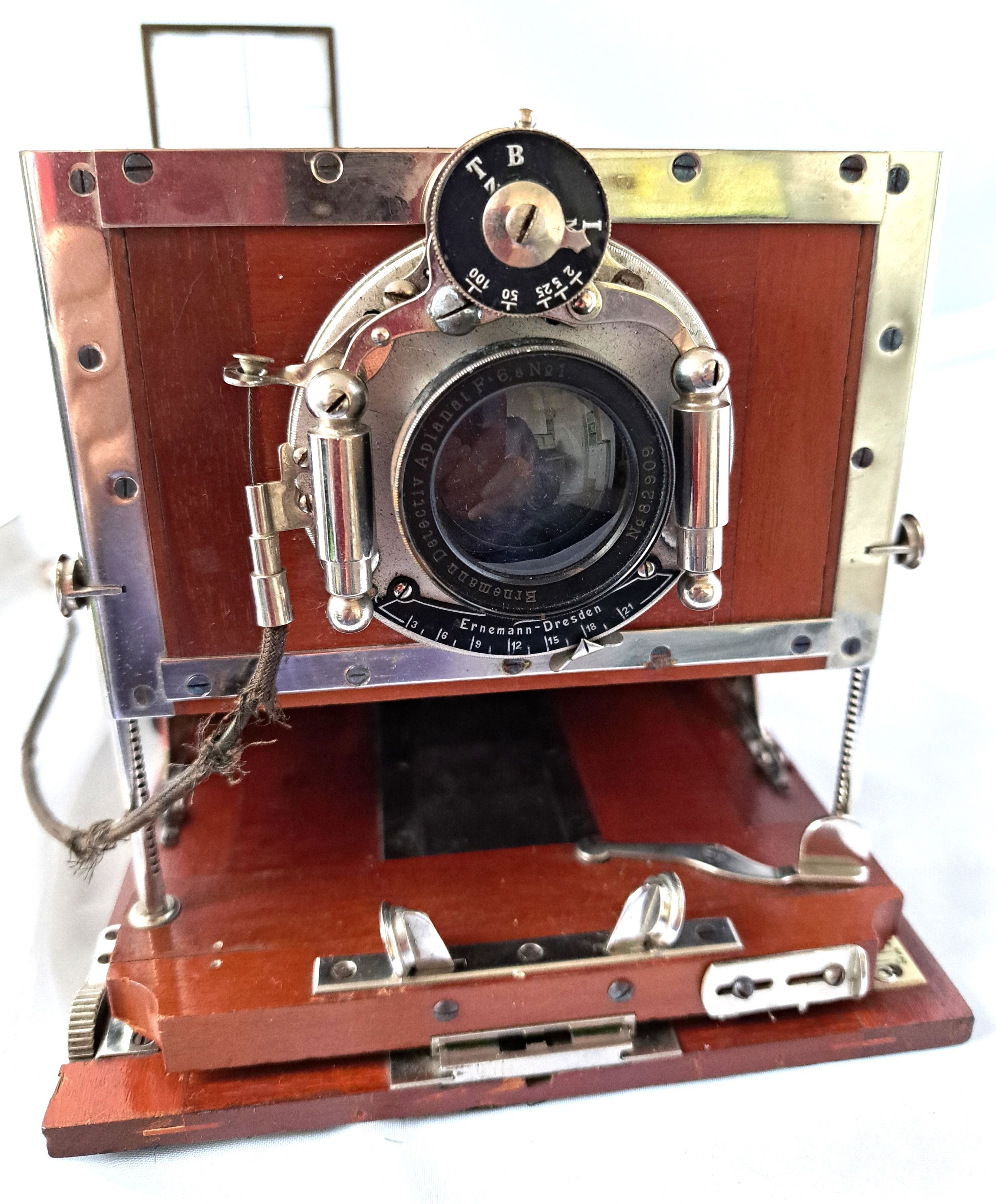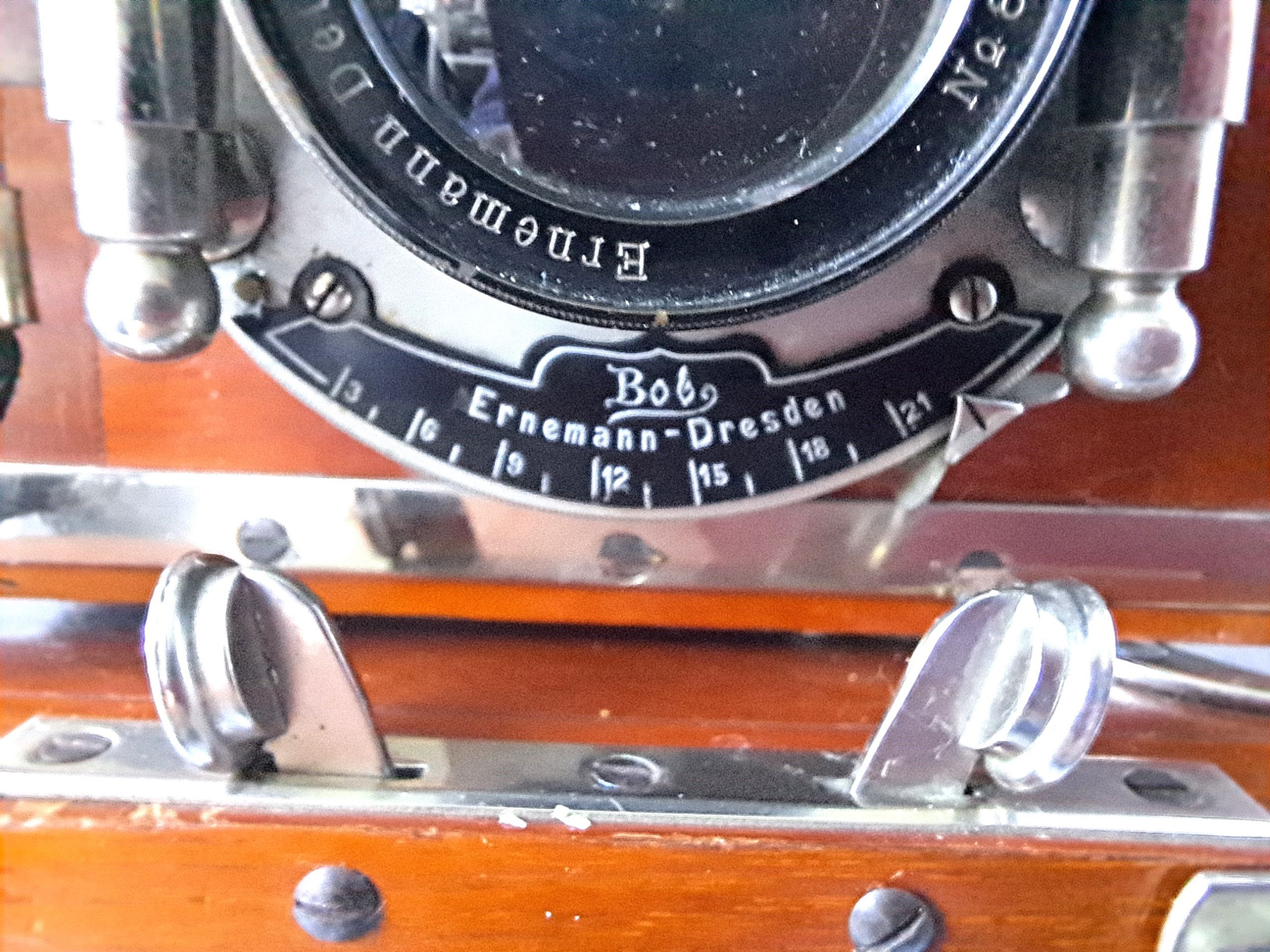 Ein kleiner Hinweis zur Datierung vorab: Deine Kamera ist mit einem ERNEMANN BOB II-Verschluss ausgestattet. Dieser Verschluss wurde ab 1904 angeboten.