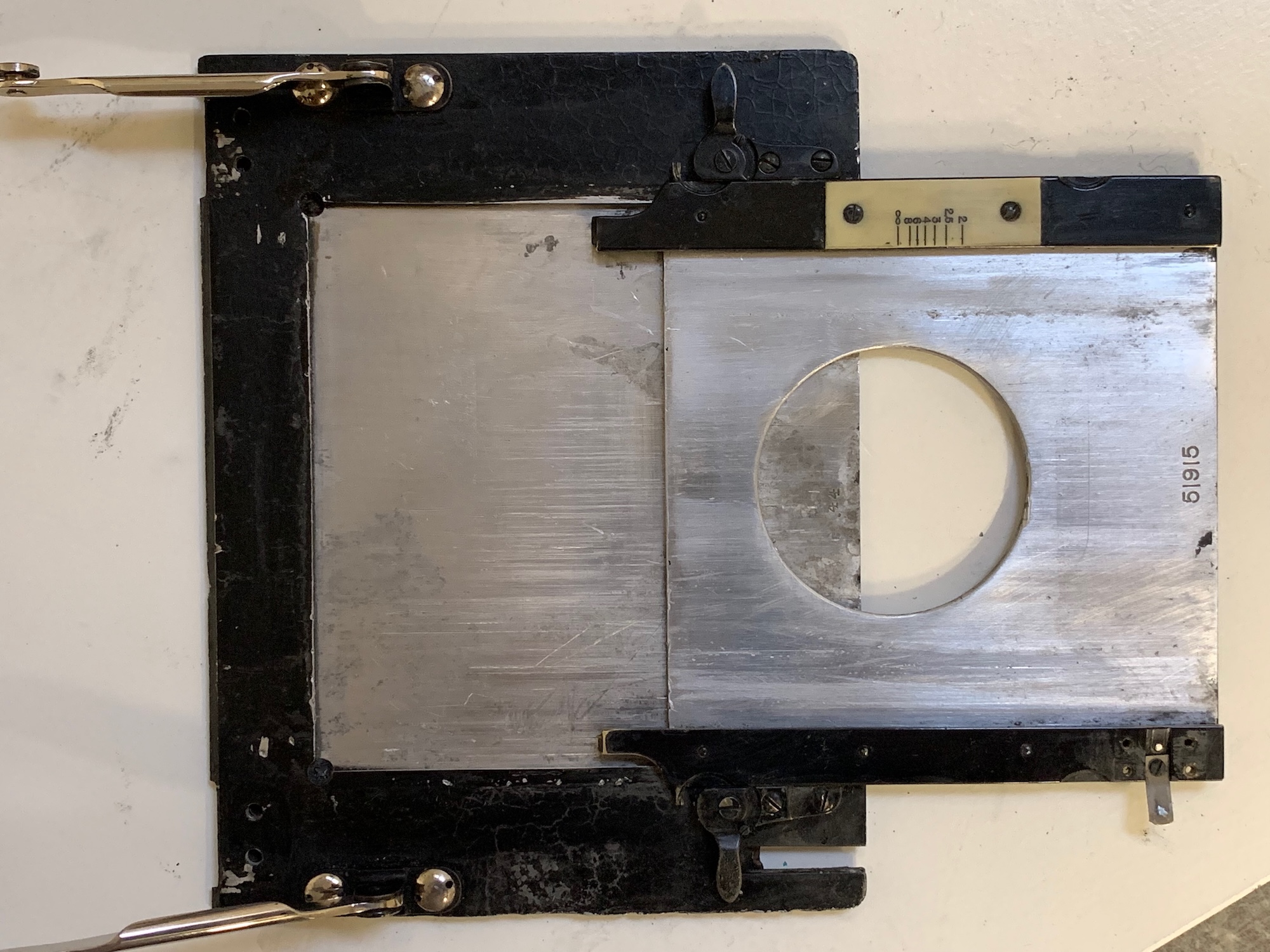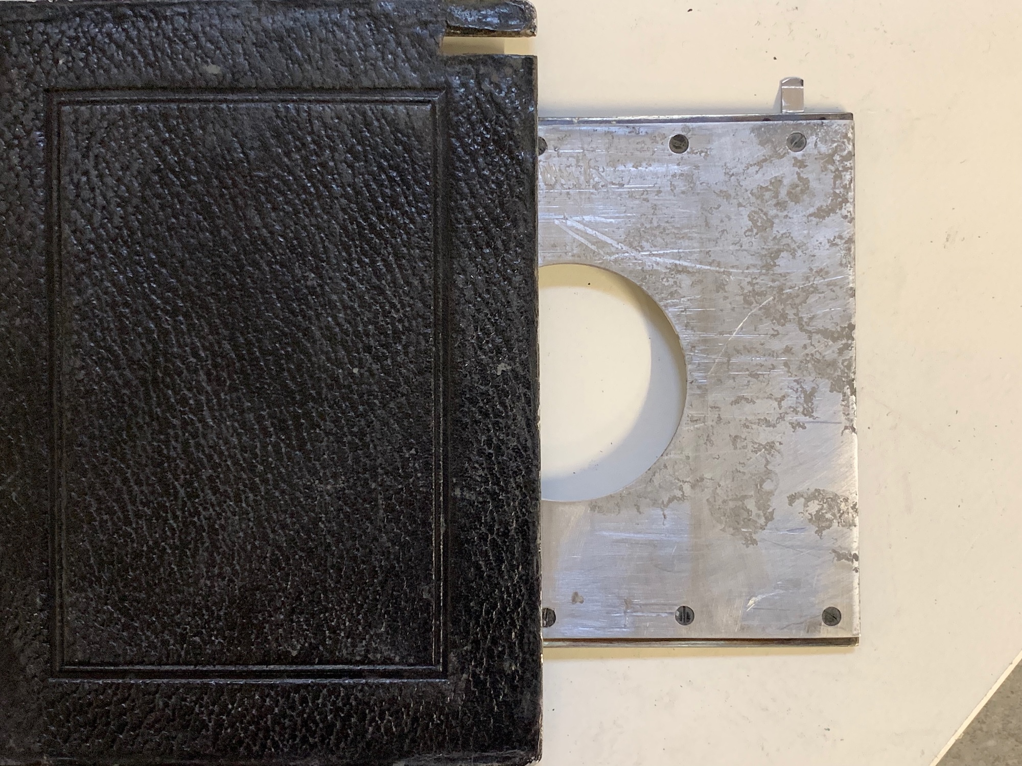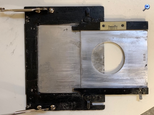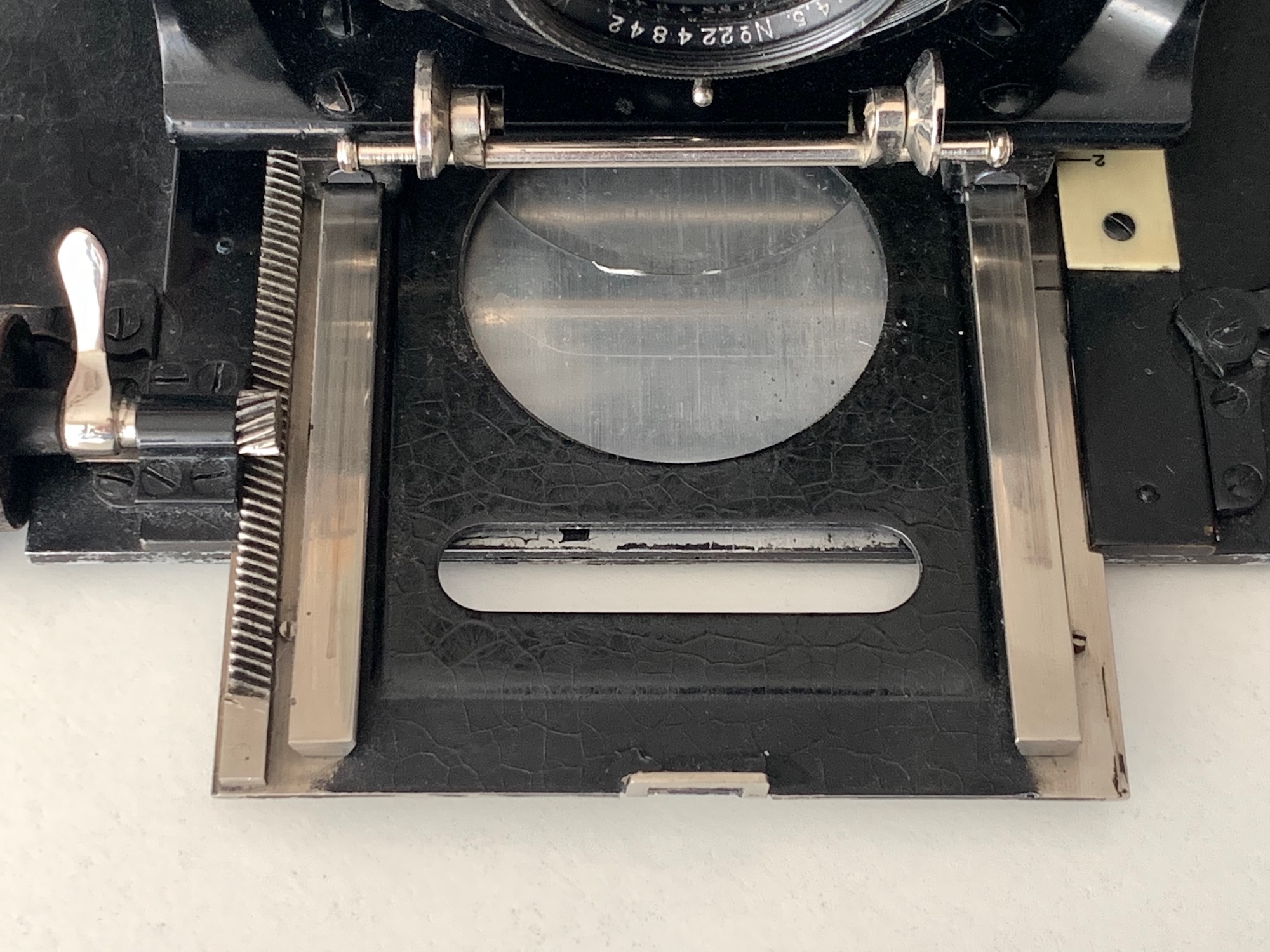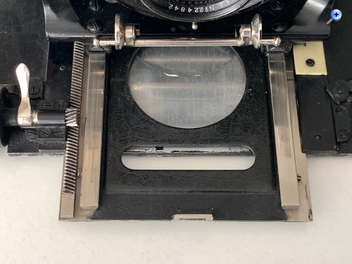 da wird Dir bestimmt irgendwann ein Exemplar über den Weg laufen, so selten ist die Alpin gar nicht, zumindest in der späteren Ausführung. Da kann man auch beim Preis Glück haben. In diesem Fall war es eine Ausrüstung mit Zubehör, und ich wollte vor allem den Voigtländer "Scharf-Richter" (--> https://blende-und-zeit.sirutor-und-comp...3&thread=58) haben, da war es dann insgesamt sogar günstig. – Diese Kamera habe ich jetzt schon ein paar Jahre, seither hat mich immer der feststeckende Auszug geärgert, da habe ich mir ein Herz gefasst. Hier ist zum Glück alles recht einfach demontierbar...