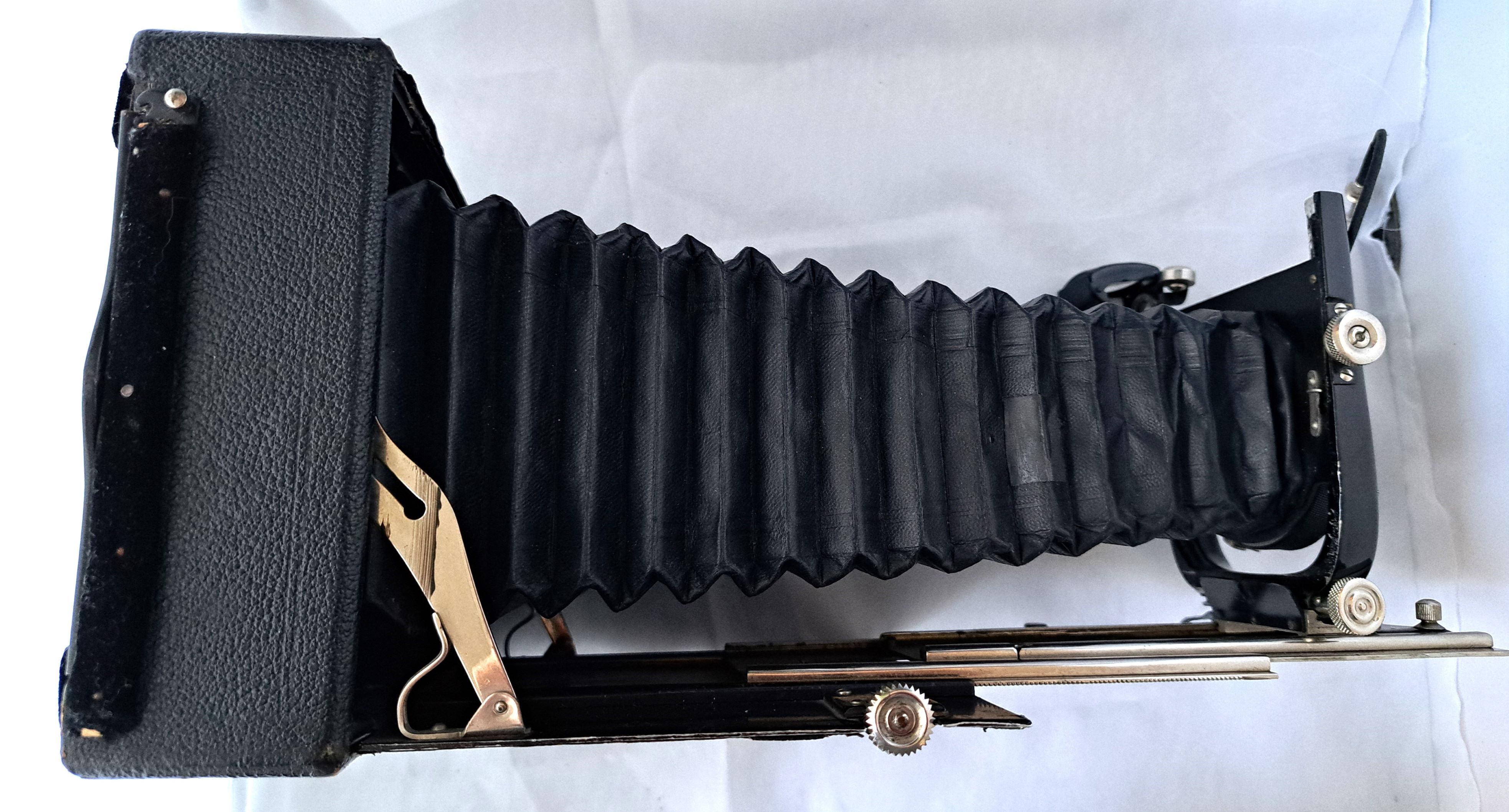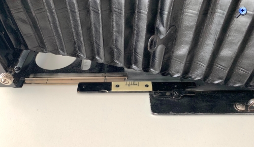 die Alpin-Modelle von Voigtländer besitzen wie die meisten querformatigen Laufbodenkameras einen dreifachen Auszug. Dazu gibt es im Auszug ein zweites Segment, das entriegelt oder gelöst werden muss. Bei der Alpin 10x15 (PR 2886) sieht das so aus: