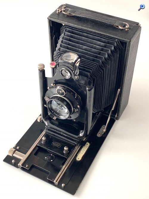 Das gezeigte Exemplar ist mit einem Tessar 4,5/18 cm in Compur bestückt. Der Preis für diese Konfiguration betrug im Jahr 1929 noch 328 RM, 1931 schon 370 RM. Die Kamera war bis Oktober 1937 lieferbar.
