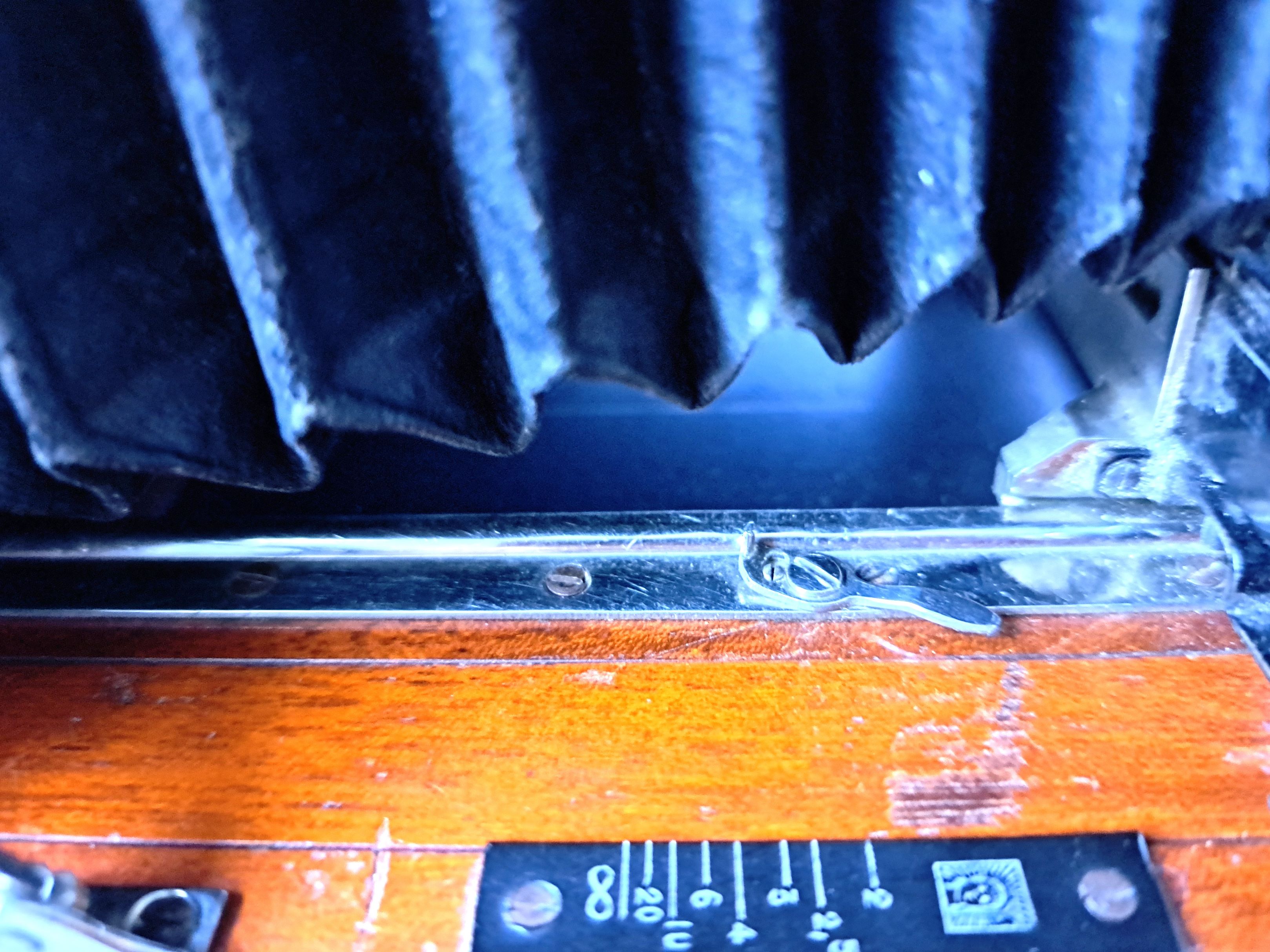 ich habe mir noch einmal meine Zweiverschluss-Kamera von Bülter und Stammer genauer angeschaut. Auch bei ihr kann man den dritten Auszug aktivieren und läuft ganz geschmeidig. Da kann man nur staunen, dass das alles noch in dem Alter funktioniert.