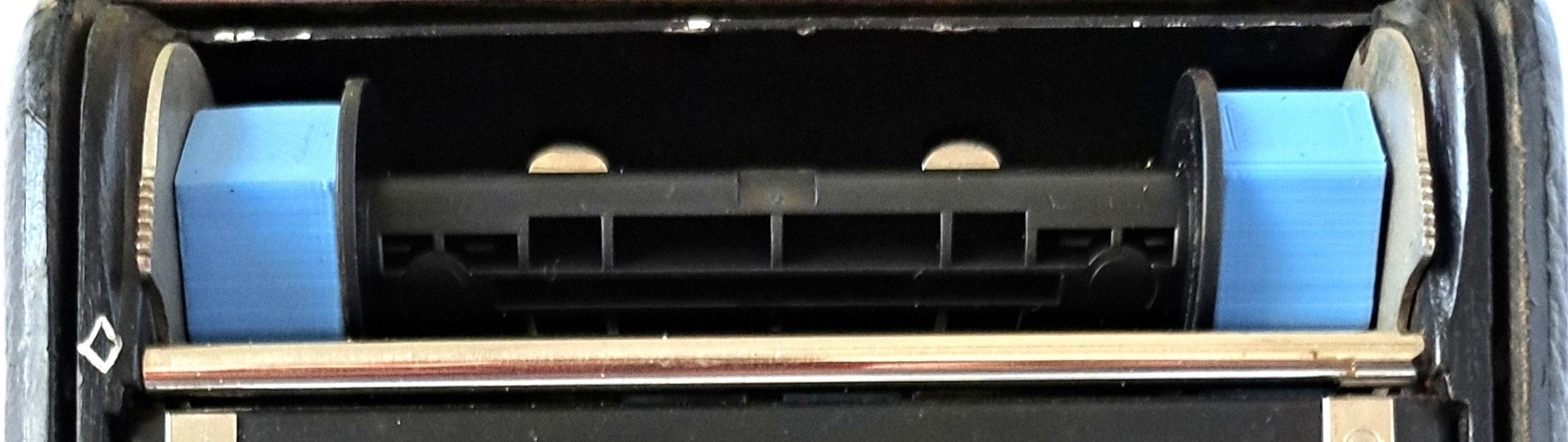 Sie ist eine wunderschöne Kamera in einem guten Erhaltungszustand - bis auf den verschmutzten oder korrodierten Spiegel des Brillantsuchers. Mit ihr möchte ich gern fotografieren. Da es die Rollfilme 118 nicht mehr gibt, war ich froh, Adapter für die Rollfilme 120 gefunden zu haben.