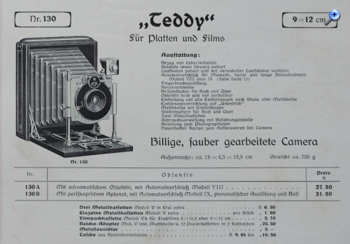 ja, Teddy 130 kann ich bestätigen. Im Ica-Katalog 1910 wird sie folgendermaßen beschrieben: