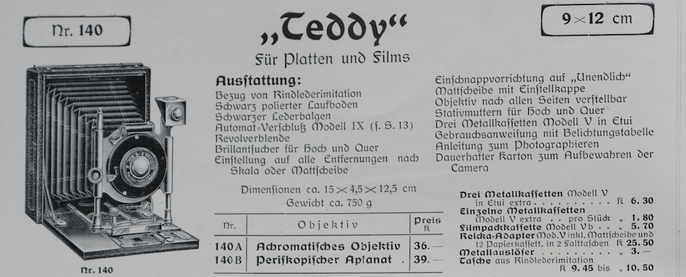 ohne vermessen zu erscheinen, möchte ich einige Bilder ergänzen. Meine Kamera habe ich als ICA Teddy 130 eingeordnet und zwar das Modell 130 B. In eurem Beitrag habe ich erfahren - und ausprobiert - dass es sich bei meiner Kamera um eine 140 B handelt.