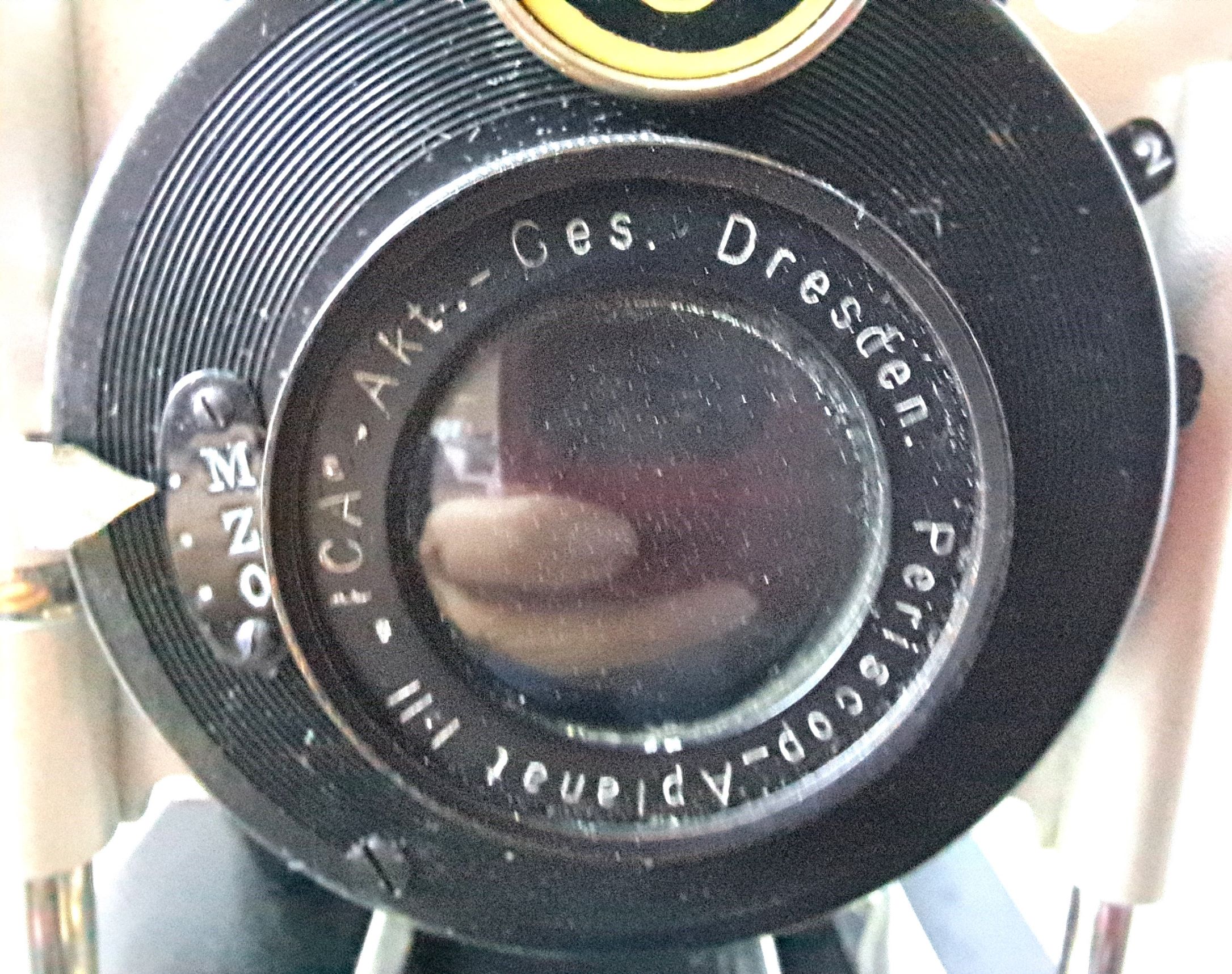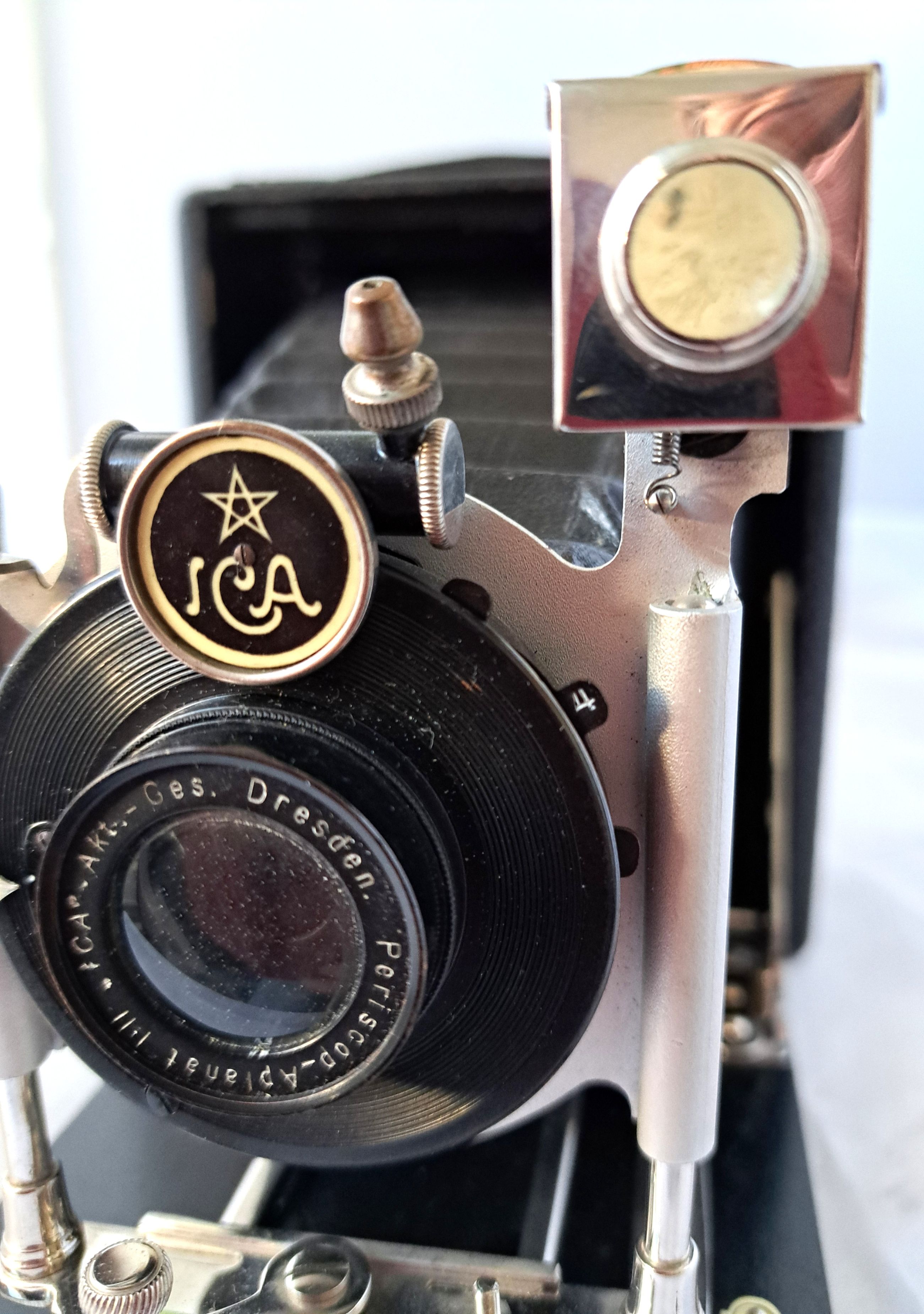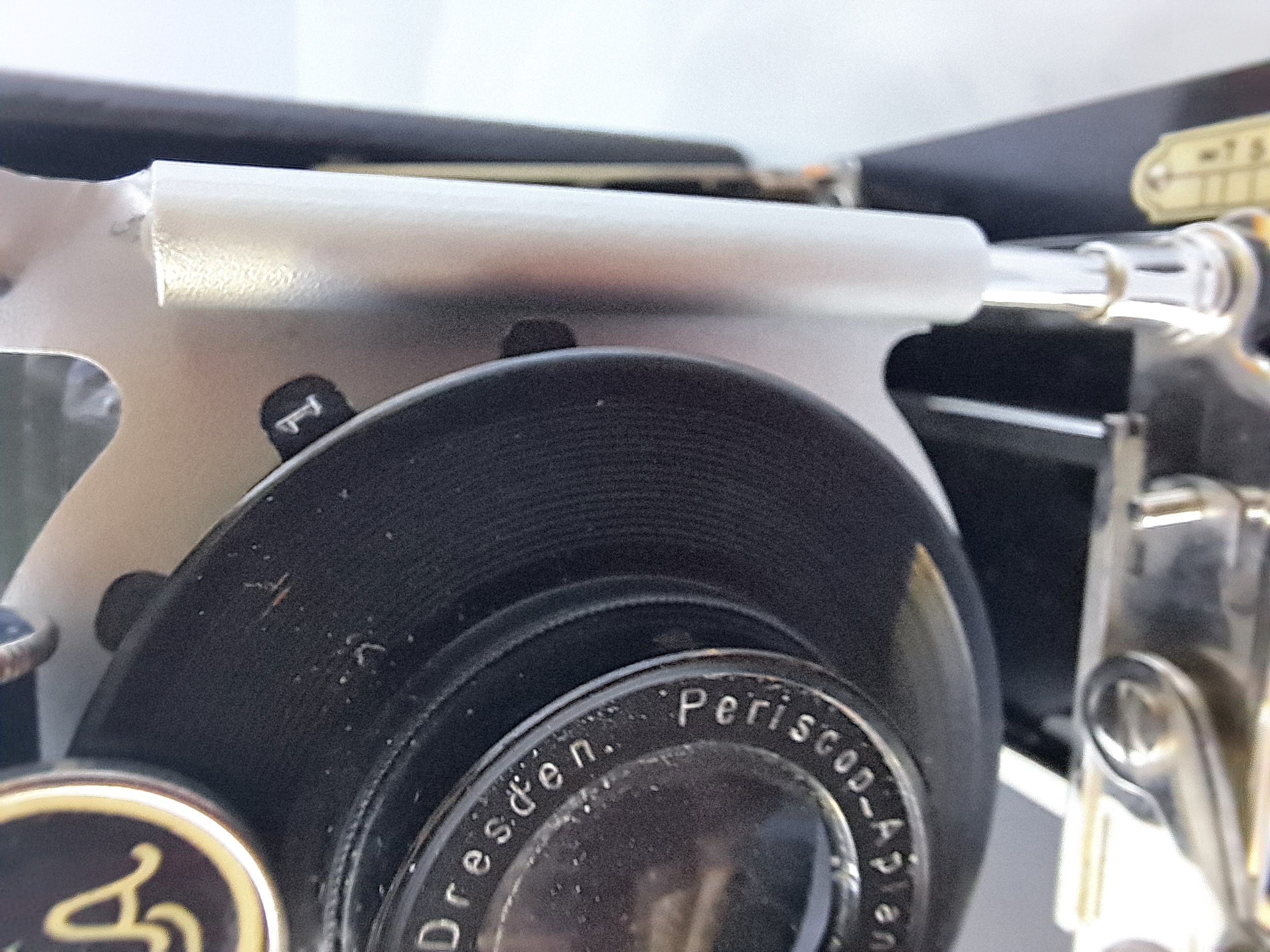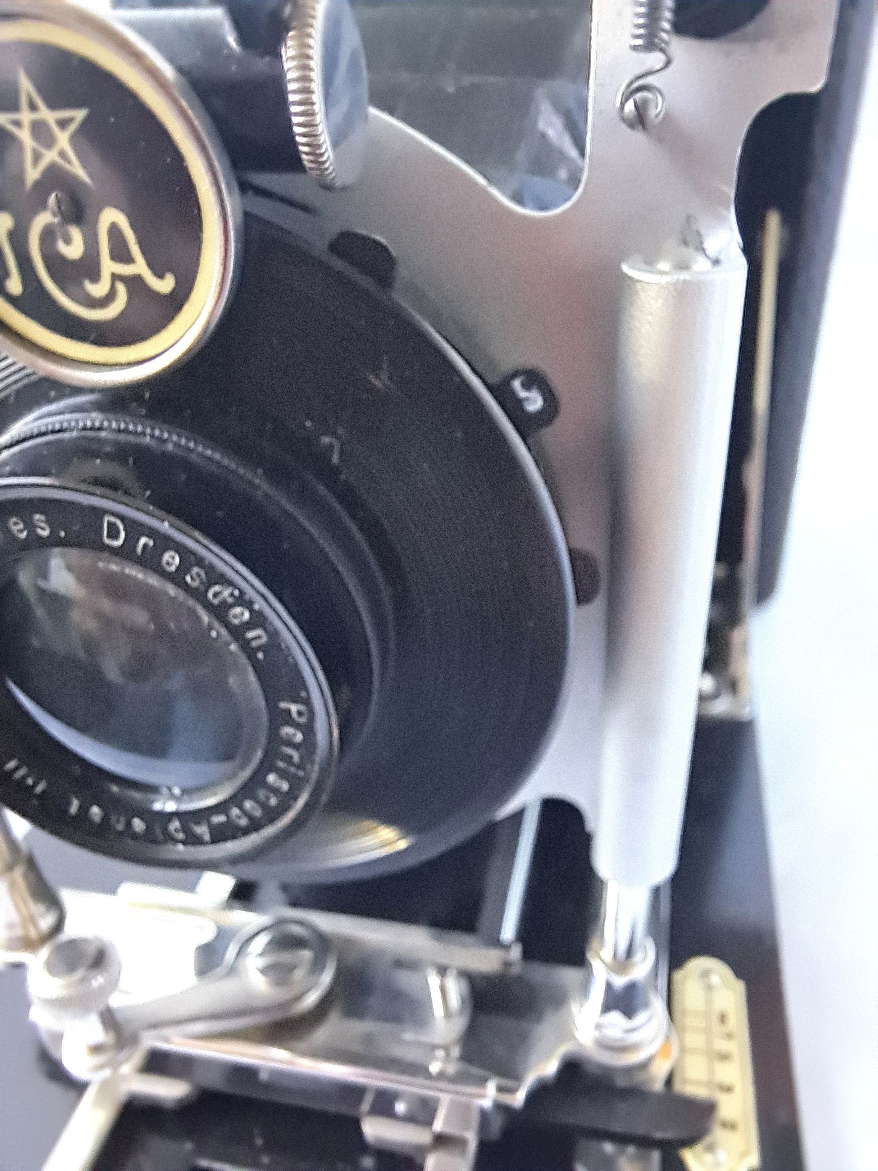 der einzige Hinweis auf eine ICA-Kamera ist die Plakette vor dem Zylinder des Verschlusses. Mir scheint, es handelt sich bei meiner Kamera um eine Krügener, der man auf die Schnelle das ICA-Abzeichen angeschraubt hat.