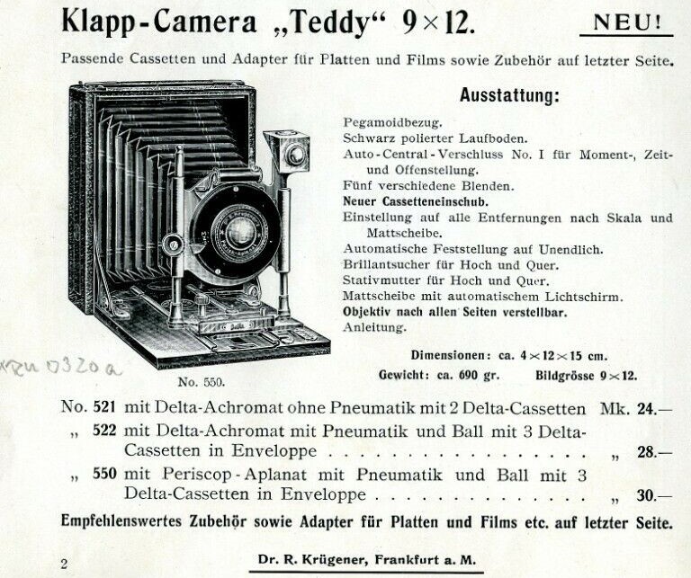 Im Katalog 1911 wird die Kamera schon nicht mehr geführt. Eigenartig die Seriennummer mit vorangestellem B, zu erwarten wäre ein A. Vielleicht meldet sich ja Pavel noch.