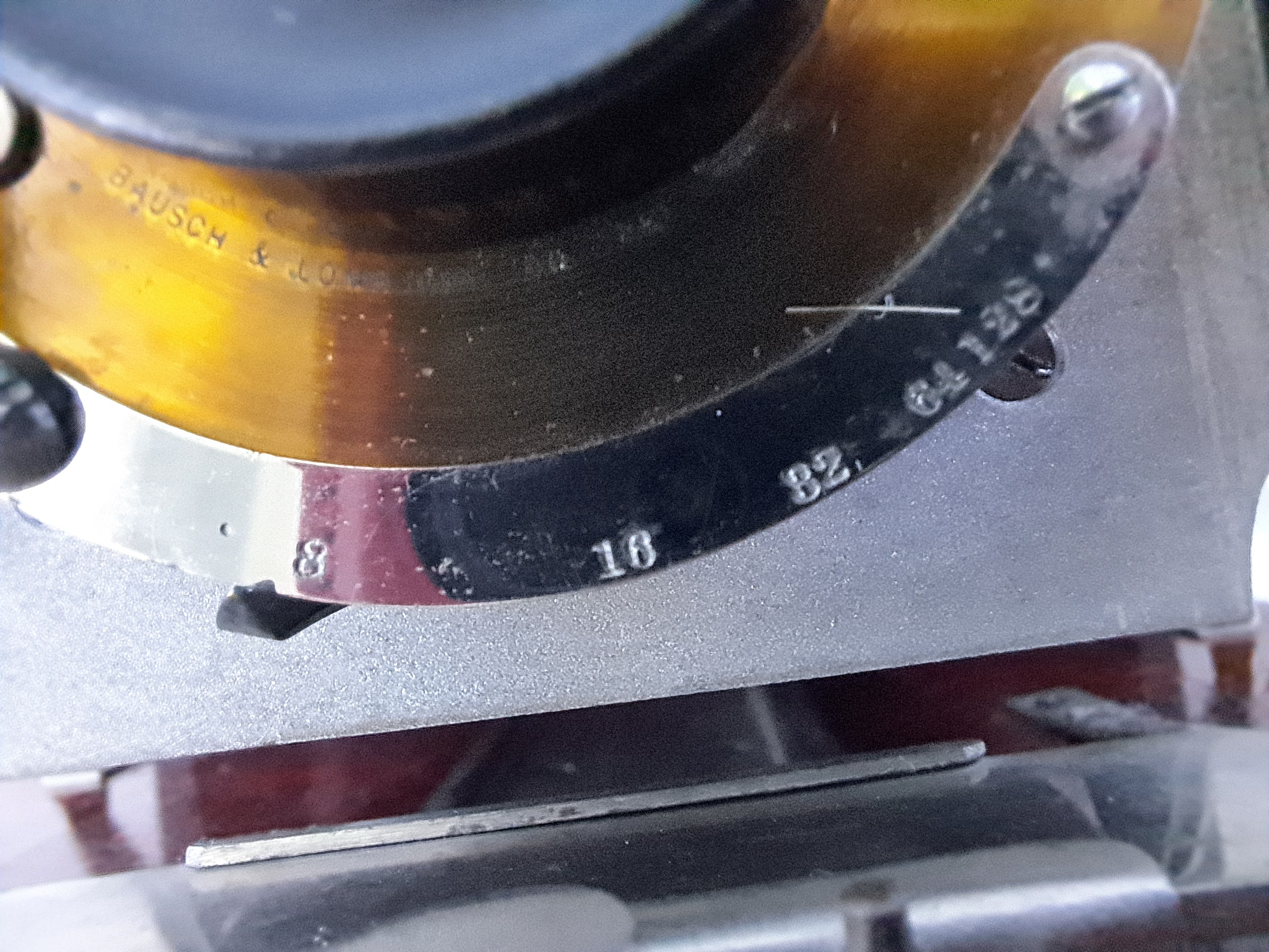 Das Objektivbrett ist aus Magnalium und kann manuell durch Lösen bzw. Feststellen eines Schraubenknopfes in der Höhe verstellt werden.