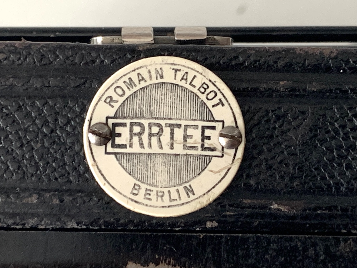 die vorliegende kleine Spreizenkamera, die von Romain Talbot (Berlin) unter der Handelsmarke Errtee vertreiben wurde, wie die seitliche Plakette zeigt, lässt sich leicht als Contessa Nettel Nettix der frühen Ausführung (1919–23) identifizieren – umso mehr, als das Mattscheibenrückteil den Schriftzug Contessa Nettel aufweist. Vor diesem Hintergrund stellt sich die Frage, ob wir es überhaupt mit einer Handelsmarkenkamera zu tun haben – einen Nettix-Schriftzug trägt die von Contessa Nettel angebotene Kamera zunächst nämlich auch nicht (erst seit ca. 1923), Talbot hat also keine Änderungen vorgenommen.