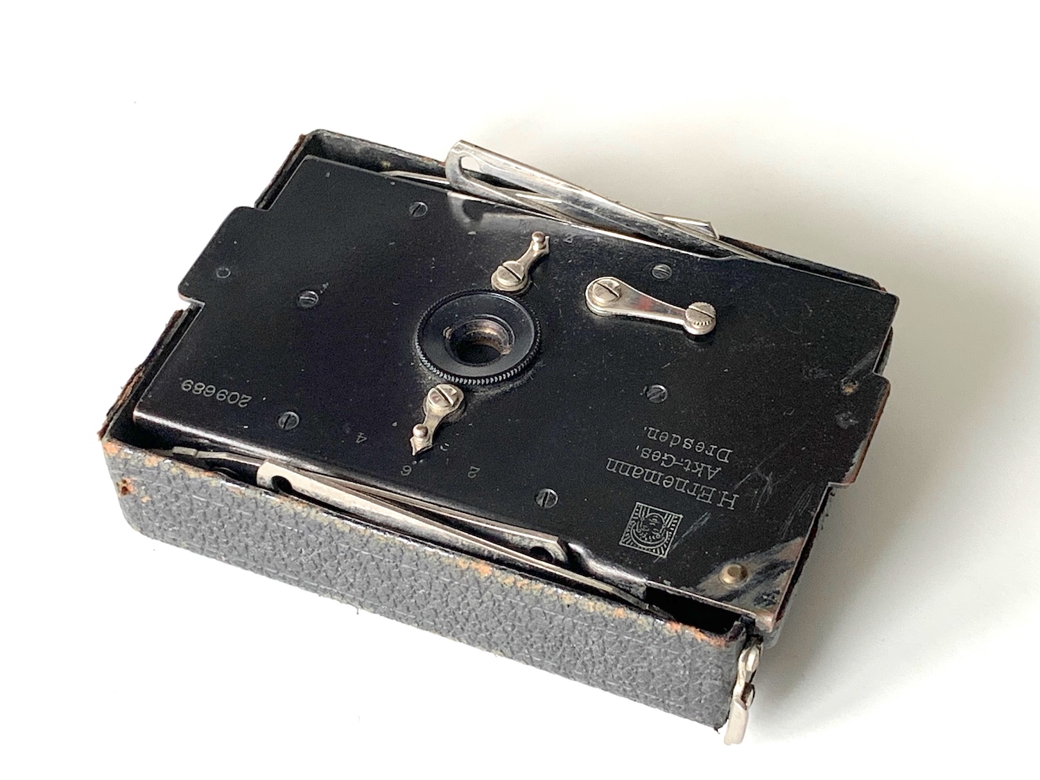 In vielen Publikationen wird die Kamera auch als 1. Ausführung der Ernemann Mignon deklariert, so auch im Buch von Göllner. Vermutlich ist es irgendwann zu einem Wechsel der Bezeichnung bekommen – vielleicht auf Intervention des Dresdner Mitbewerbers, der seit der Integration von Zulauf 1912 die Ica Bébé im Programm hatte (--> https://blende-und-zeit.sirutor-und-comp...&thread=224)? Dazu habe ich keine weiteren Informationen gefunden.