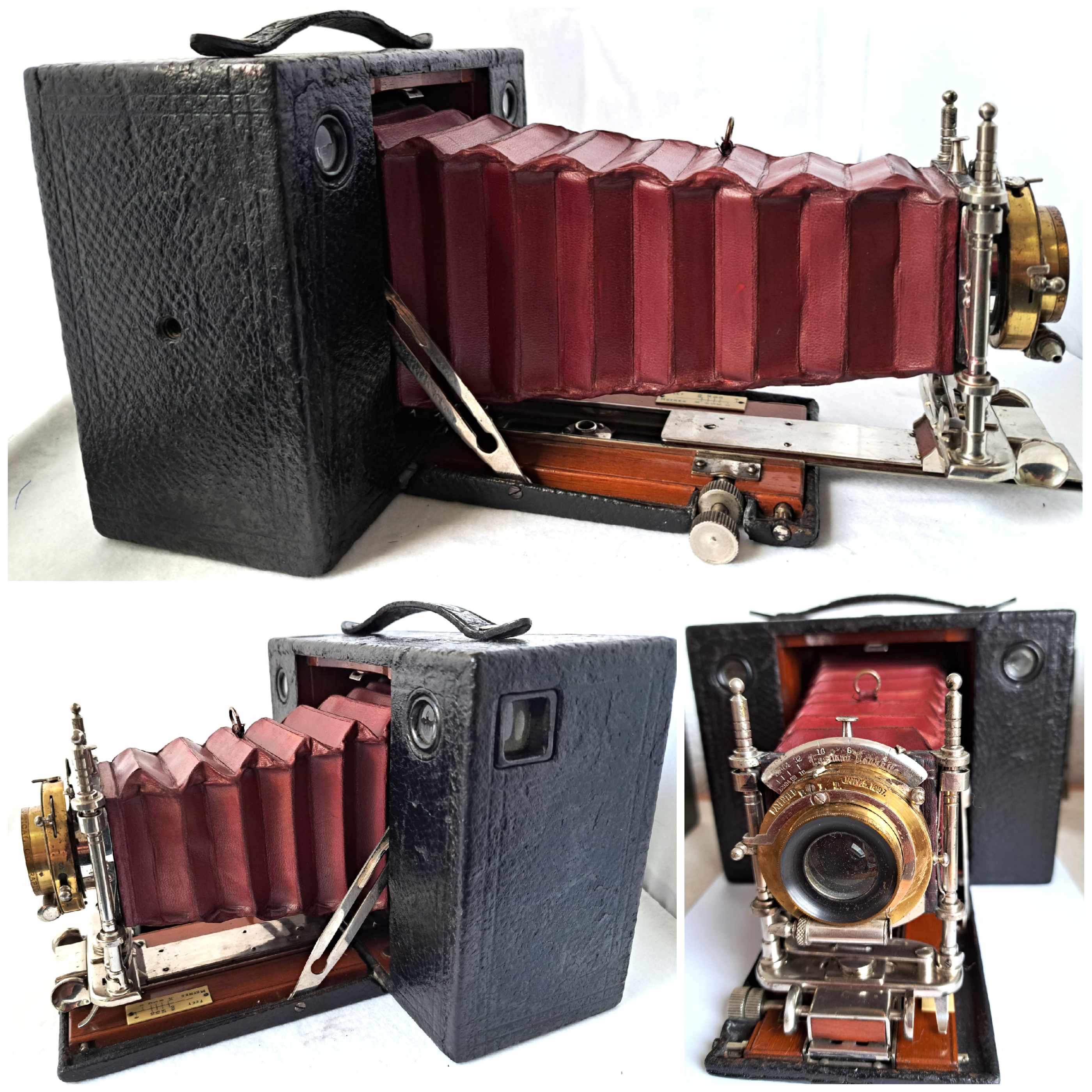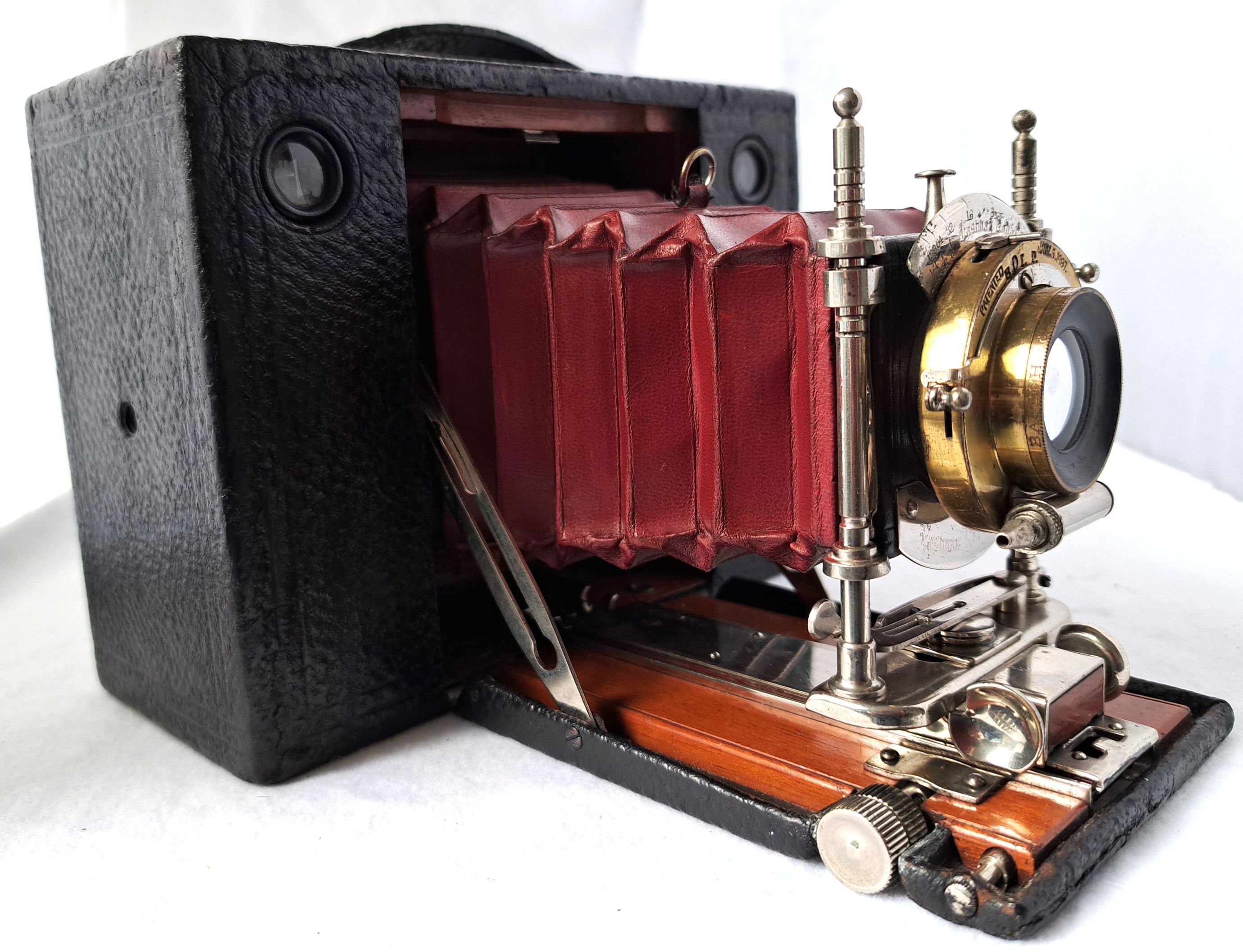 Meine Cartridge Kamera wurde 1901 – 1903 hergestellt. Sie besitzt ein beledertes Holzgehäuse im Querformat - so scheint es.