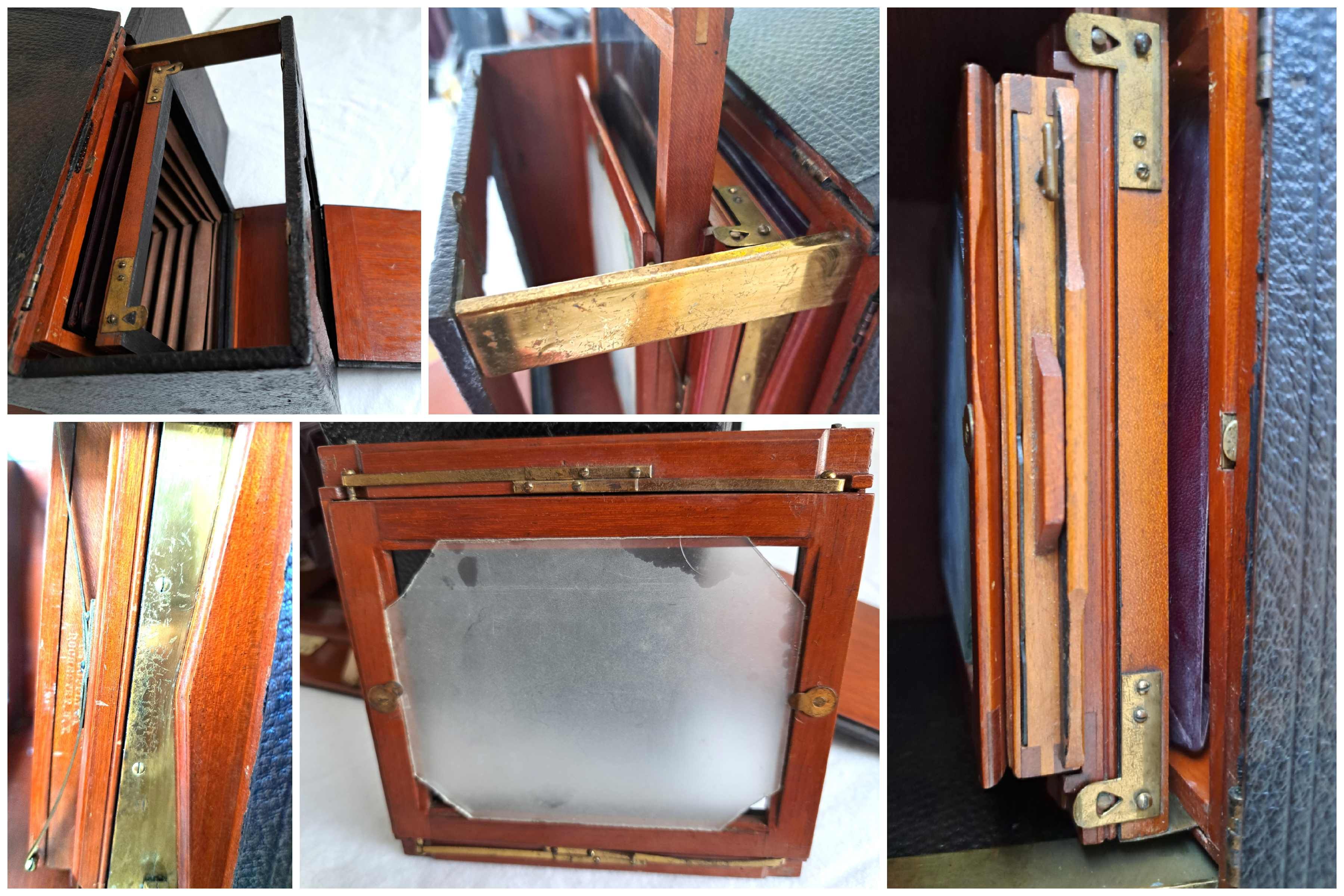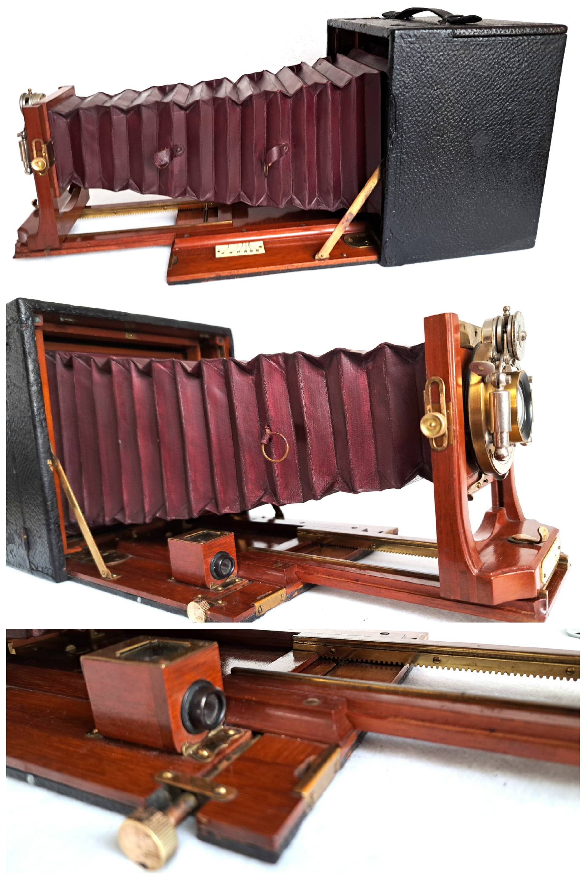 Materialien von höchster Qualität: Der Kamerakörper besteht aus poliertem Mahagoni-Holz, während die Metallteile aus hochglanzpoliertem und lackiertem Messing gefertigt sind.