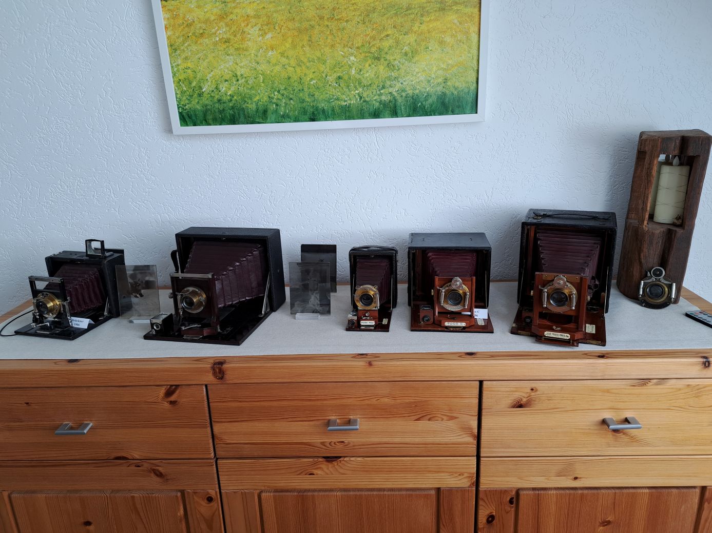 Die drei Pocos stehen im Wohnzimmer auf dem Sideboard zusammen mit der Brückner, einer noch Unbekannten und einem Stück Balken aus unserem alten Rathaus von 1619.