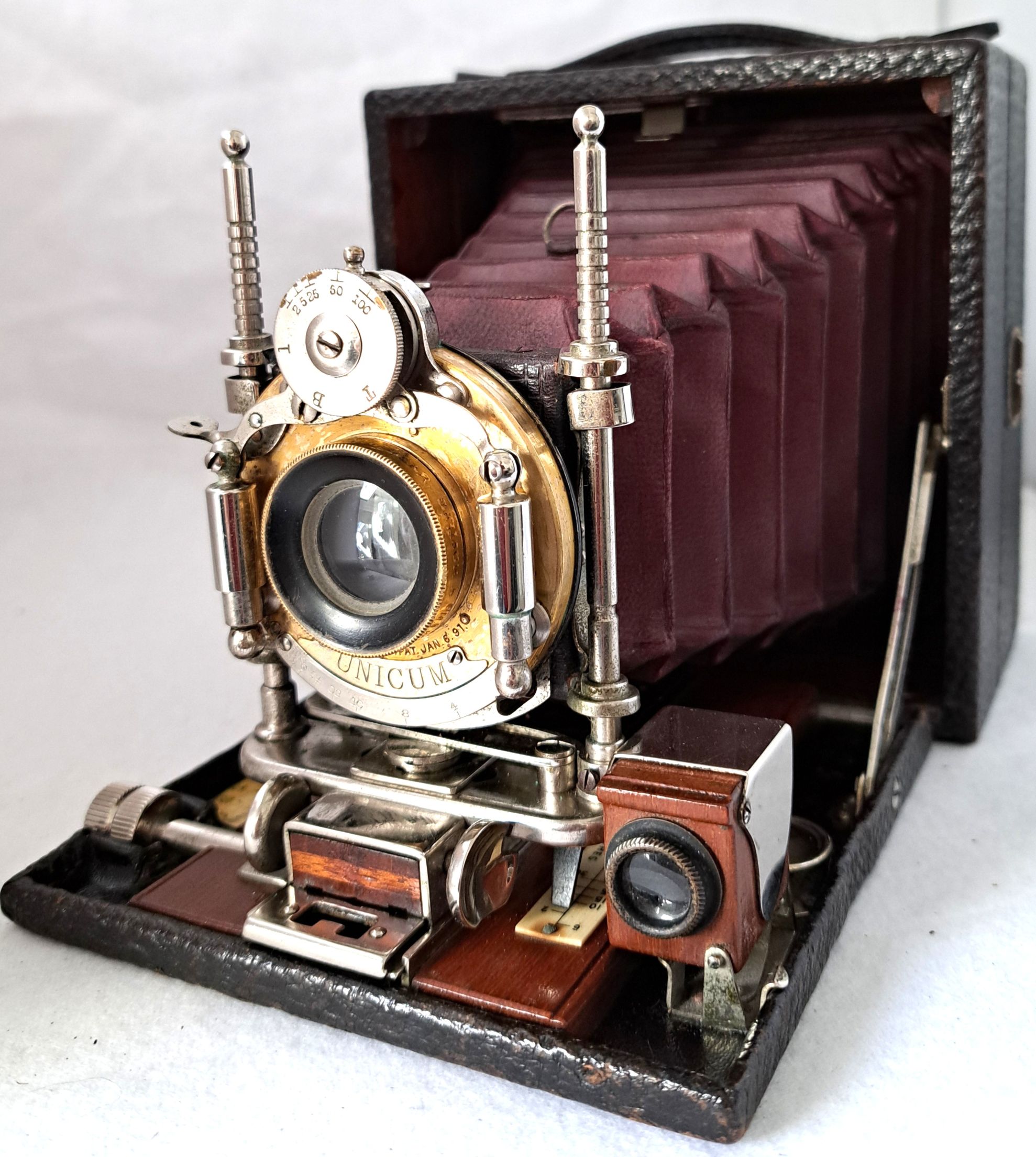 Die zweigeteilte Rückwand ermöglicht eine Erweiterung des Balgens, um das vordere oder das hintere Objektivglied zu benutzen. Im Mai 1902 konnte die auswechselbare Rückwand durch Bohrung mit einrastendem Stift arretiert werden.