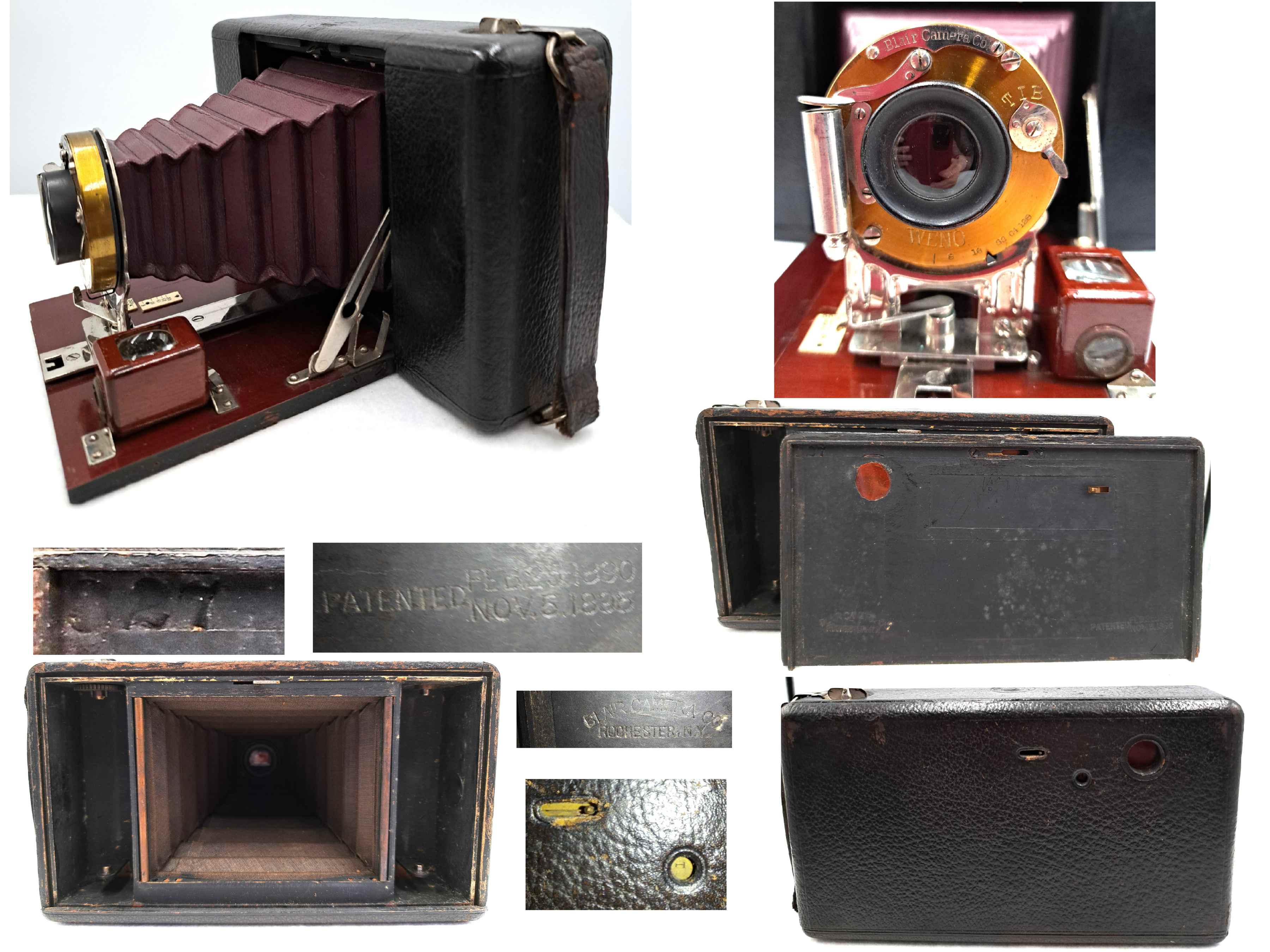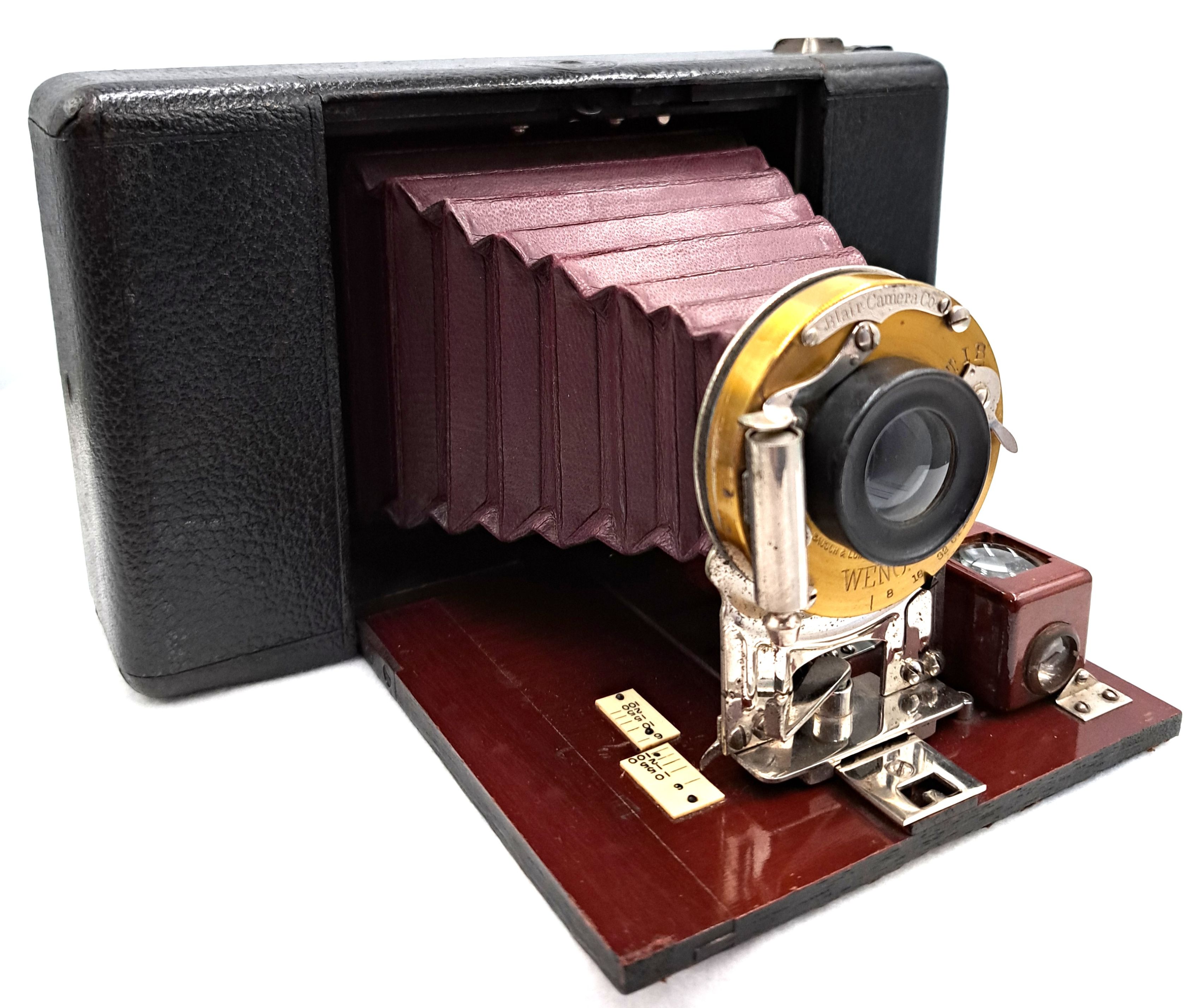 Historischer Überblick • Die Blair Camera Company wurde Ende des 19. Jahrhunderts in Boston, Massachusetts, gegründet. • Ursprünglich als Blair Tourograph Co. bekannt, brachte sie 1878 die Kamera Tourograph auf den Markt. • 1890 übernahm Blair die Boston Camera Company und damit die beliebte Hawk-Eye-Boxkamera-Serie. • 1899 wurde Blair ein Teil von Kodak und zog nach Rochester, New York, wo die Hawk-Eye-Linie unter Kodaks Namen weitergeführt wurde. Bedeutende Modelle • Hawk-Eye Junior: Eine kompakte Boxkamera, ideal für Hobbyfotografen. • Blair No. 3 Folding Hawk-Eye: Eine faltbare Kamera mit Balg, geschätzt für ihre Mobilität und Bildqualität. • Stereo Hawk-Eye: Entwickelt für stereoskopische Fotografie – also 3D-Bilder lange vor der digitalen Ära.