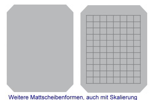 Plattenkameras nutzten gern Mattscheiben zur Bilddarstellung und zur genauen Schärfeeinstellung. Dabei gab es Mattscheiben teilweise auch mit Linienraster und sonstigen Markierungen. Die Mattscheibe selbst war herausnehmbar, um stattdessen dann die Glasplatten mit Kassette für die Aufnahmen einsetzen zu können.