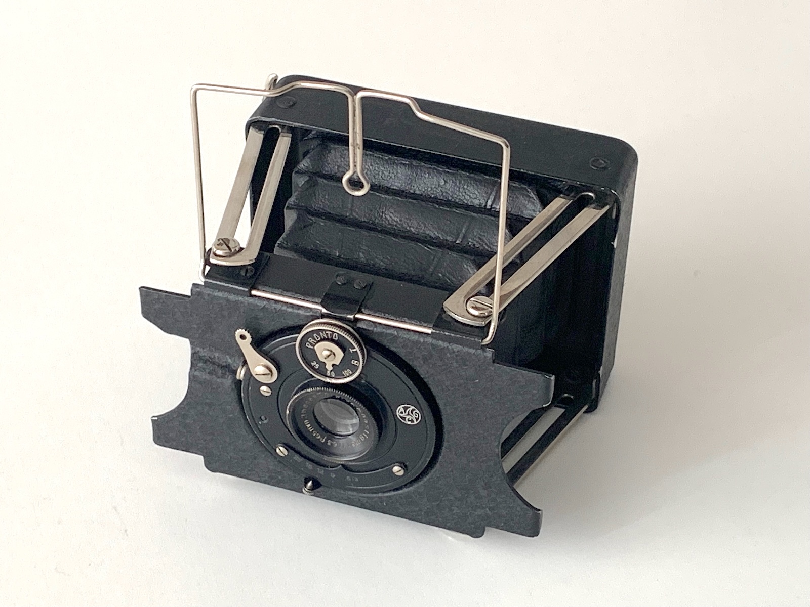 die hier vorzustellende Spreizenkamera wurde im Zeitraum 1925–1937 unter der Best.-Nr. 200 in den Ihagee-Katalogen geführt, und zwar als Photoknips oder Westentaschen-Photoknips.