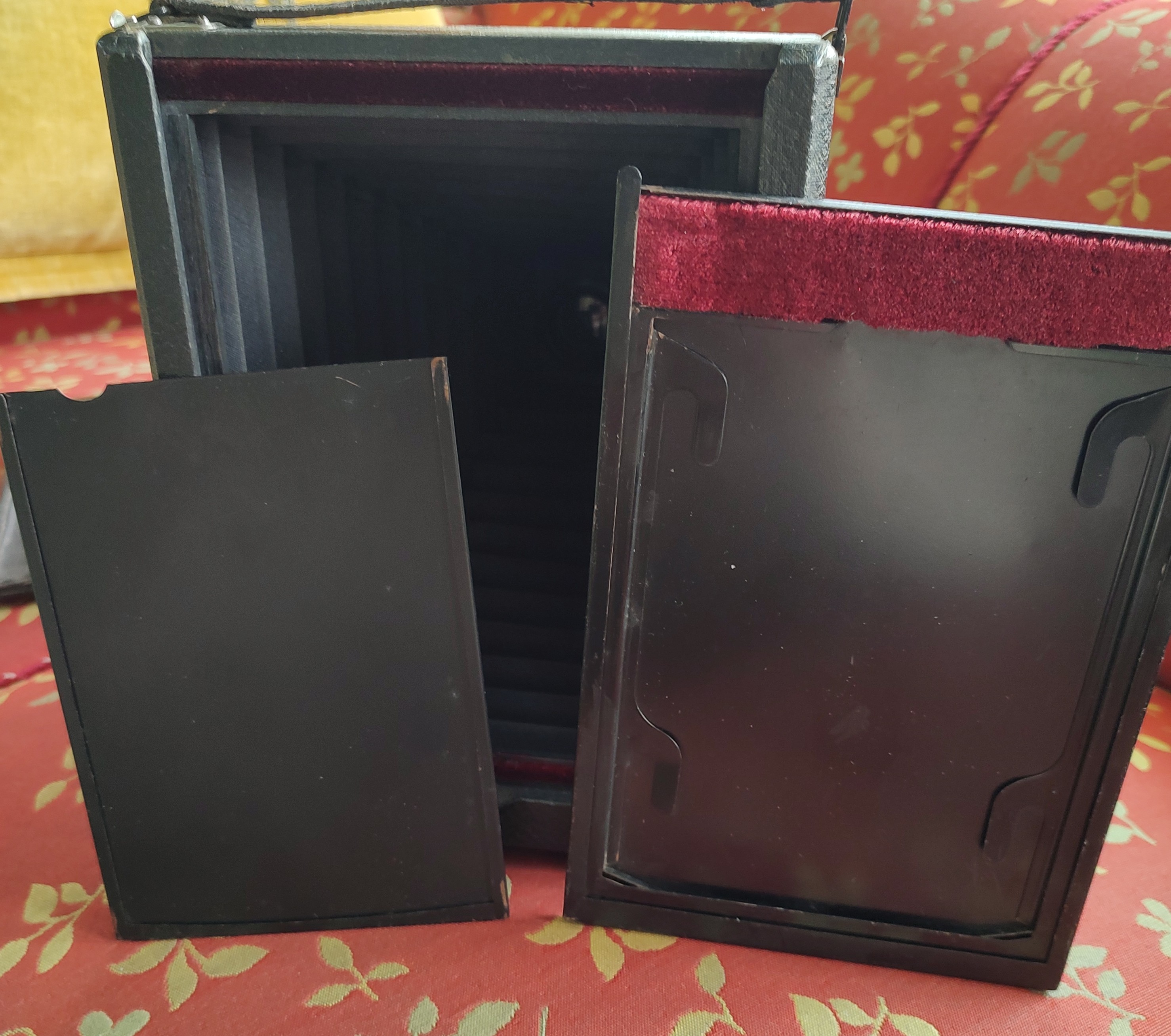 ich habe eine namenlose Plattenkamera, Format 13x18, erworben (s. die Fotos). Mithilfe eines Herstellers für Planfilmeinlagen in Polen und Glück beim Onlinehändler habe ich mehrere passende Cassetten mit Planfilmeinlagen zusammenbekommen. Diese Einlagen haben das Außenmaß 12x16 und das Innenmaß, also für den Film, 11,8x16,4. Aufgrund eines Denkfehlers habe ich munter 13x18 Planfilm gekauft, der natürlich nicht passt. Aber welcher würde passen? Das ist ja ein merkwürdiges Zwischenformat, nicht 10x15 (zu klein) und nicht 5x7 inches (= 12,7x17,8, zu groß). Hätte hier jemand eine Idee, was ich machen kann? Mit 10x15 'tricksen', d.h. eine zusätzliche Randleiste aus Pappe einlegen o.ä? Oder gibt es doch einen passenden Film?