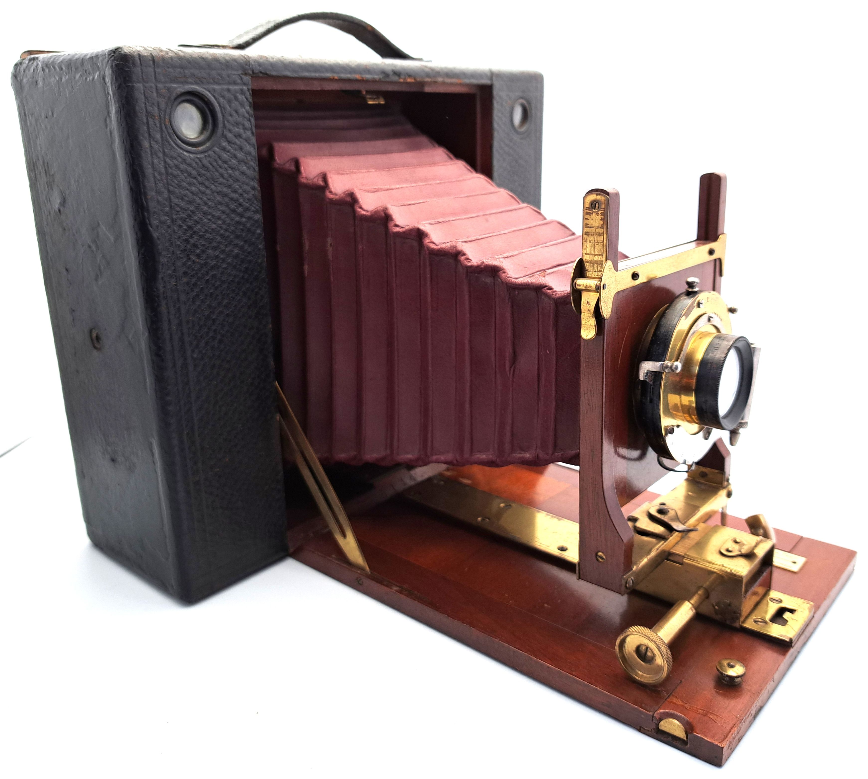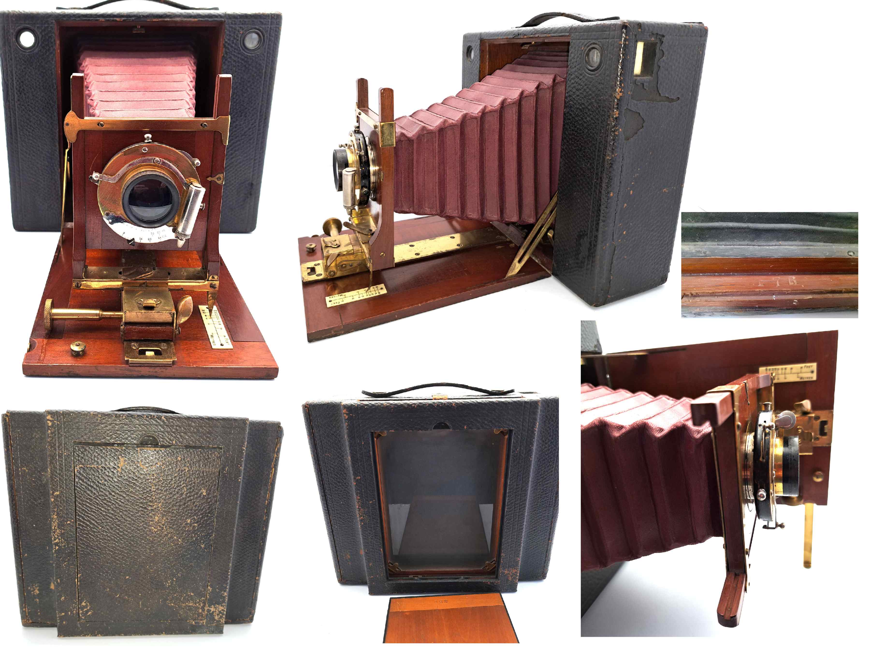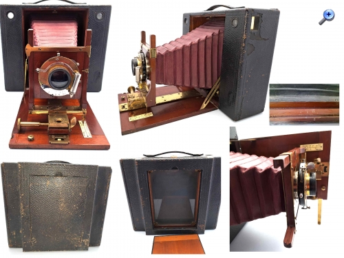 Produktionszeitraum: Markteinführung 1898, Produktionseinstellung: 1907 Produzierte Stückzahl: über 17500, Sehr frühes Modell: mit der Seriennummer : 178 Konstruktion: Lederbezogenes Holzgehäuse mit polierten Messingbeschlägen; roter Lederbalgen typisch für frühe Modelle Sucher: Zwei brillante Sucher für Hoch- und Querformat Zusatzausstattung: Glasplattenaufsatz mit der Seriennummer 356 Standarte: aus Holz fingerverzapft