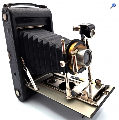 Ursprung und Entwicklung: W.Butcher&Sons London • Gründung: 1887 als Apotheke von William Butcher in Blackheath, London. • Einstieg in Fotografie: Ab ca. 1897 begannen die Söhne W.E. & F.E. Butcher mit der Herstellung fotografischer Geräte. • Standort: Ab 1902 hatte die Firma ihr Hauptquartier im „Camera House“, Farringdon Avenue, London EC. Kameraproduktion • Eigenfertigung & Import: Butcher produzierte einige Kameras selbst, importierte aber auch viele Modelle aus Deutschland (Hüttig, Ica). • Bekannte Modelle: o Primus (frühe Serie, ab 1898) o Carbine (verschiedene Varianten, auch Stereo- und Reflexmodelle) o Cameo (u.a. Stereo- und Speed-Versionen) o Midg (Magazinkamera, auch für die berühmten Cottingley-Fairies-Fotos genutzt) o Little Nipper (um 1900 und erneut um 1922) o National Field Camera und National Stereo o Royal Mail Stamp Camera (Mehrlinsenkamera für Briefmarkenporträts) Bedeutung • Butcher & Sons war kein reiner Hersteller, sondern auch ein Handelsunternehmen, das deutsche Technik nach England brachte. • Ihre Kameras deckten ein breites Spektrum ab: von einfachen Amateurkameras über Magazinkameras bis hin zu Projektoren und Zubehör. • Besonders die Carbine-Serie und die Midg-Magazinkameras sind heute für Sammler und Kuratoren von großem Interesse.