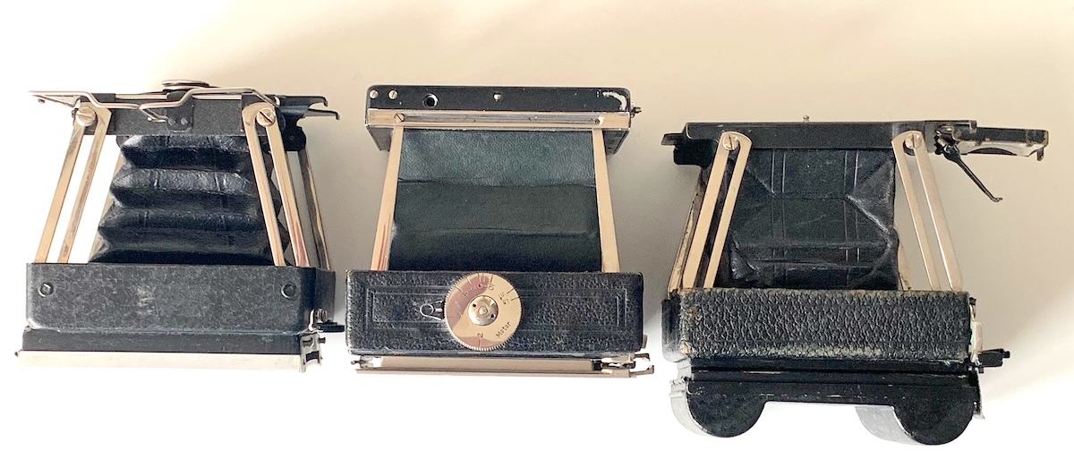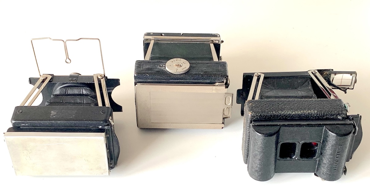 Klein waren diese Apparate vor allem ohne angesetzte Rückteile. Da gab es verschiedene Möglichkeiten: Einzel- und Doppelkassetten, Magazine für 12 Platten, Packfilmkassette und Rollfilmkassette.