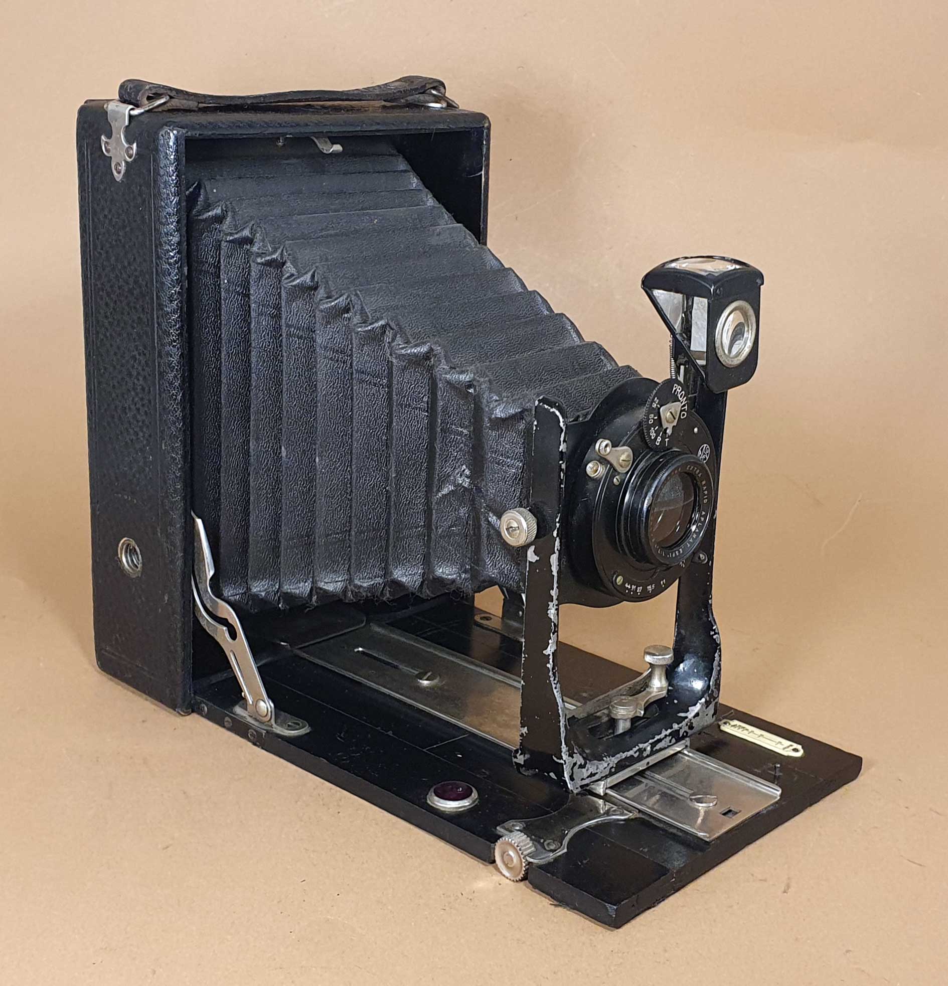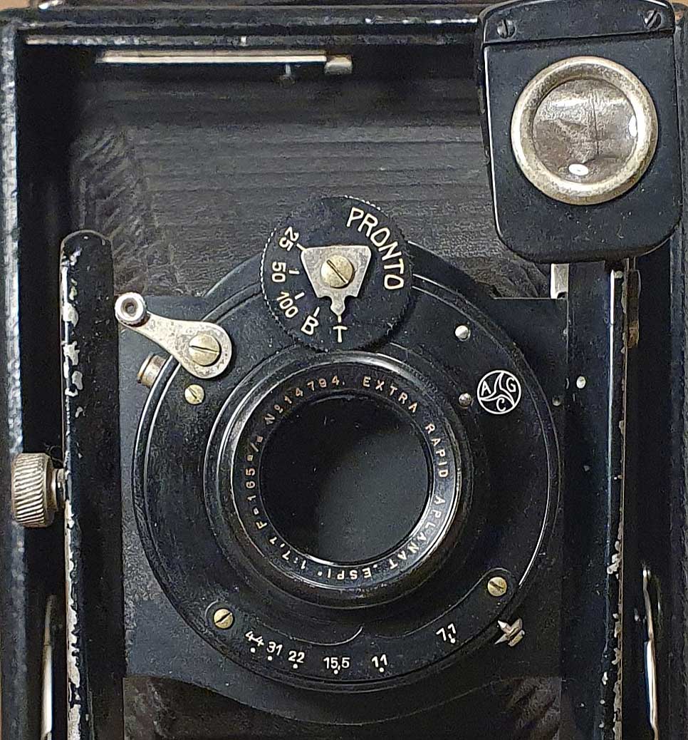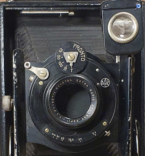 Bestückt ist die Kamera mit einem „Extra Rapid Aplanat ‚Espi‘ 1:7,7 F=165 m/m“ in einem Gauthier Pronto-Verschluss.