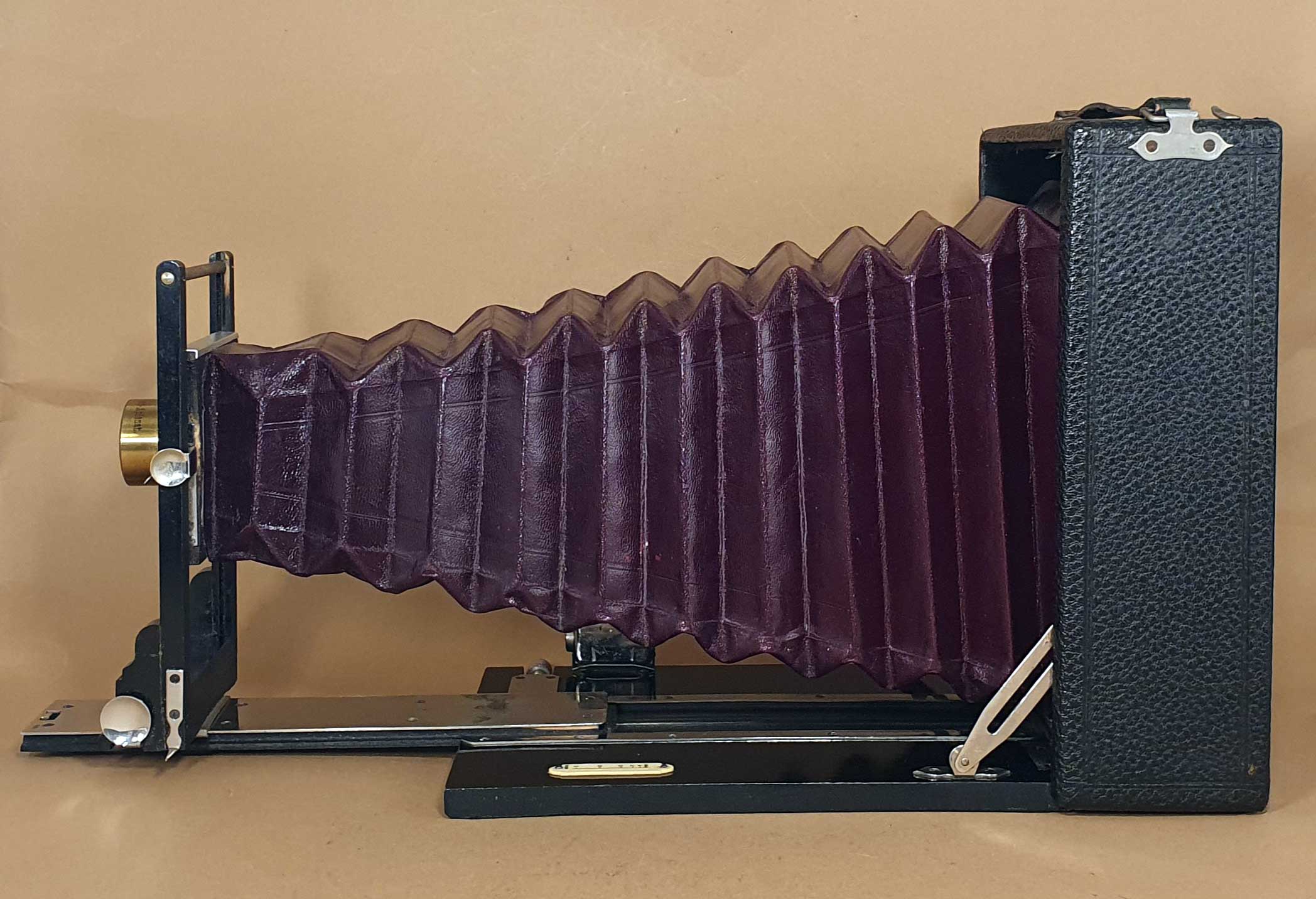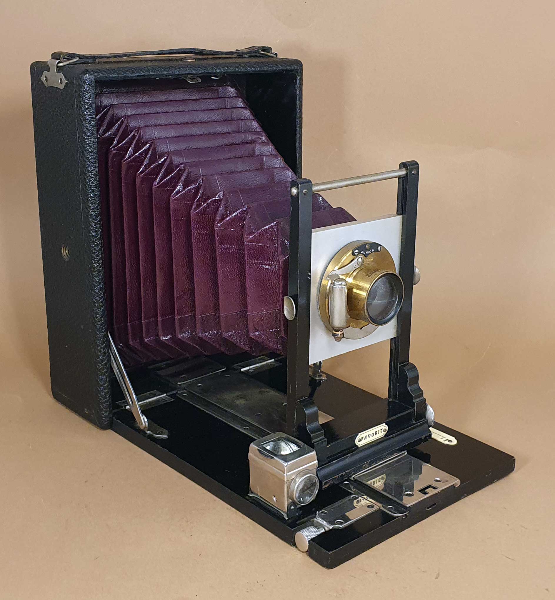 exakt datieren lässt sich die Kamera nicht. Einen passenden Katalogauszug findet man hier: https://www.collection-appareils.fr/x/ht...%20Favorit.html . Dort wird die Datierung mit ca. 1910 angegeben. In der zeitgenössischen Literatur findet sich jedoch der Hinweis, dass Brückner bereits 1909 keine Klappkameras mehr herstellte, sondern nur noch Reise- und Atelierkameras. Der Gebrauchsmusterschutz für den doppelten Auszug datiert 1903. Ich würde die Kamera deshalb ganz grob um 1905 einordnen.