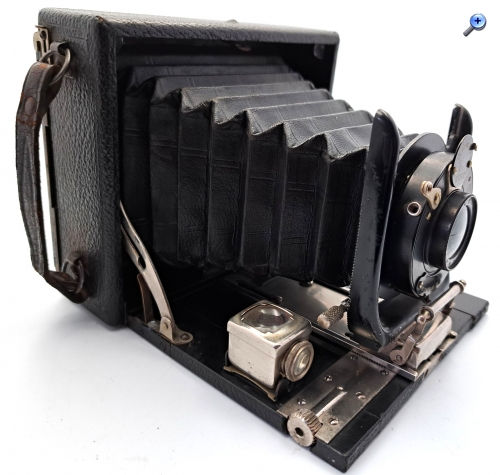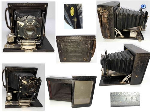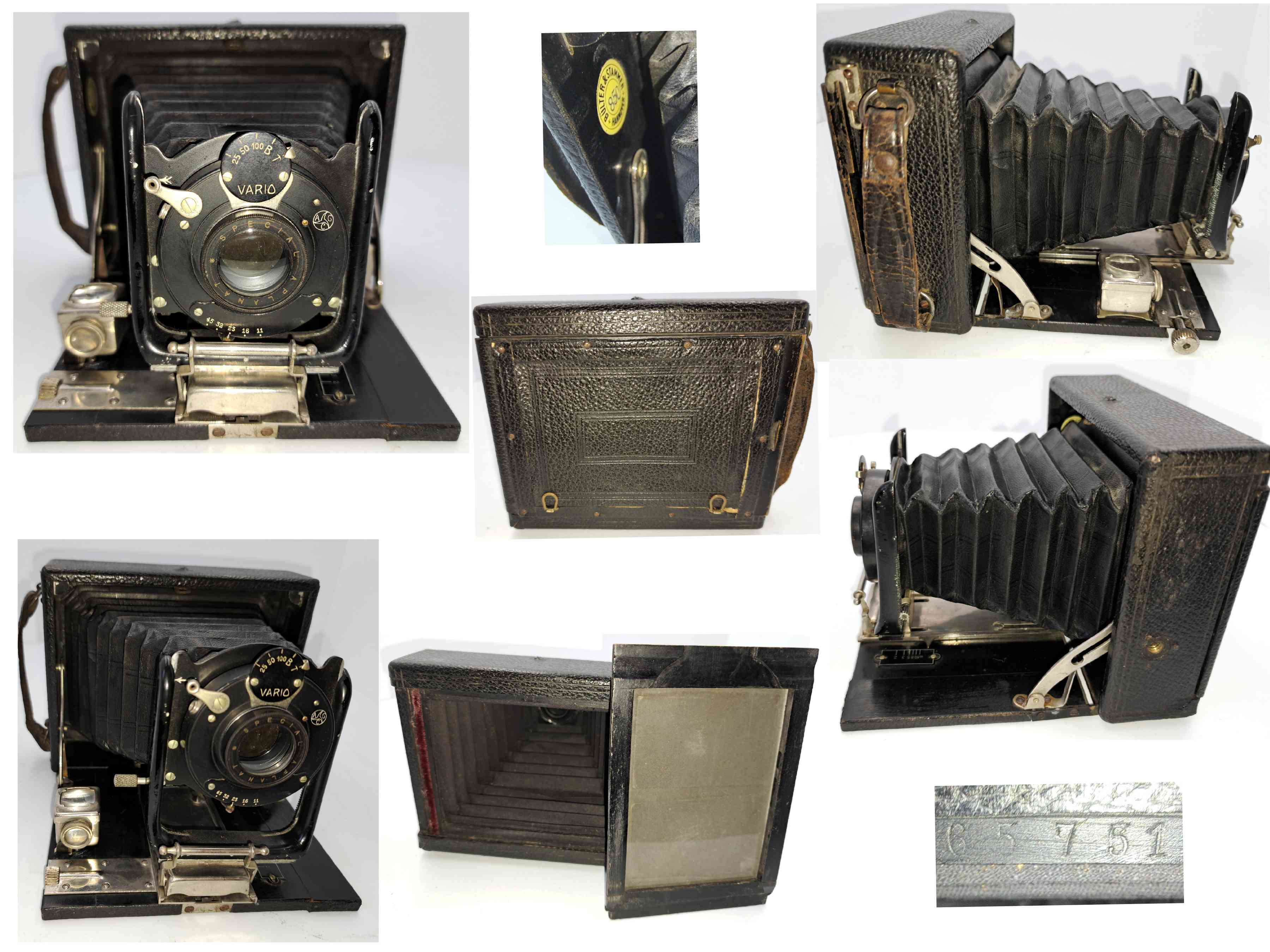 Seriennummer: 65751 Plattenformat: 11 x 8 cm Querformat Objektiv: Spezial Aplanat Verschluss: Vario Zentralverschluss von Alfred Gauthier Calmbach (AGC)