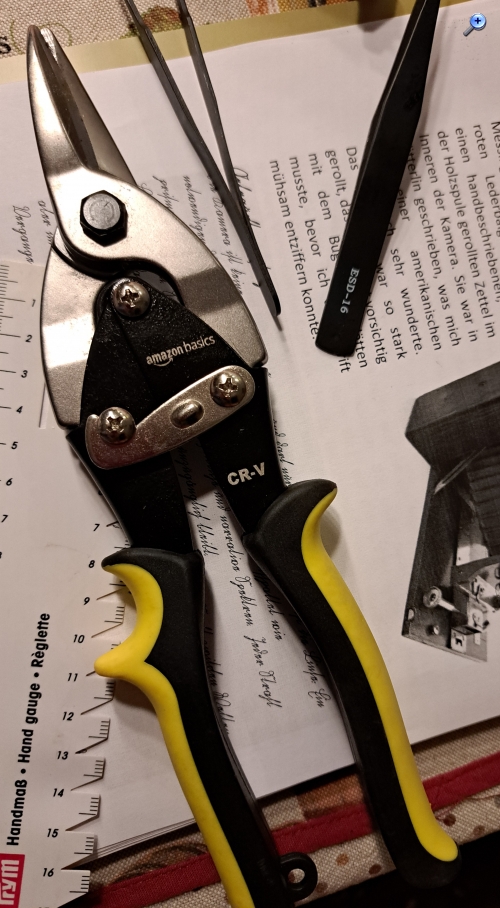Danke für den Tipp. Das Edelstahlblech, obwohl nur 0,3 mm dick, ist verdammt hart.