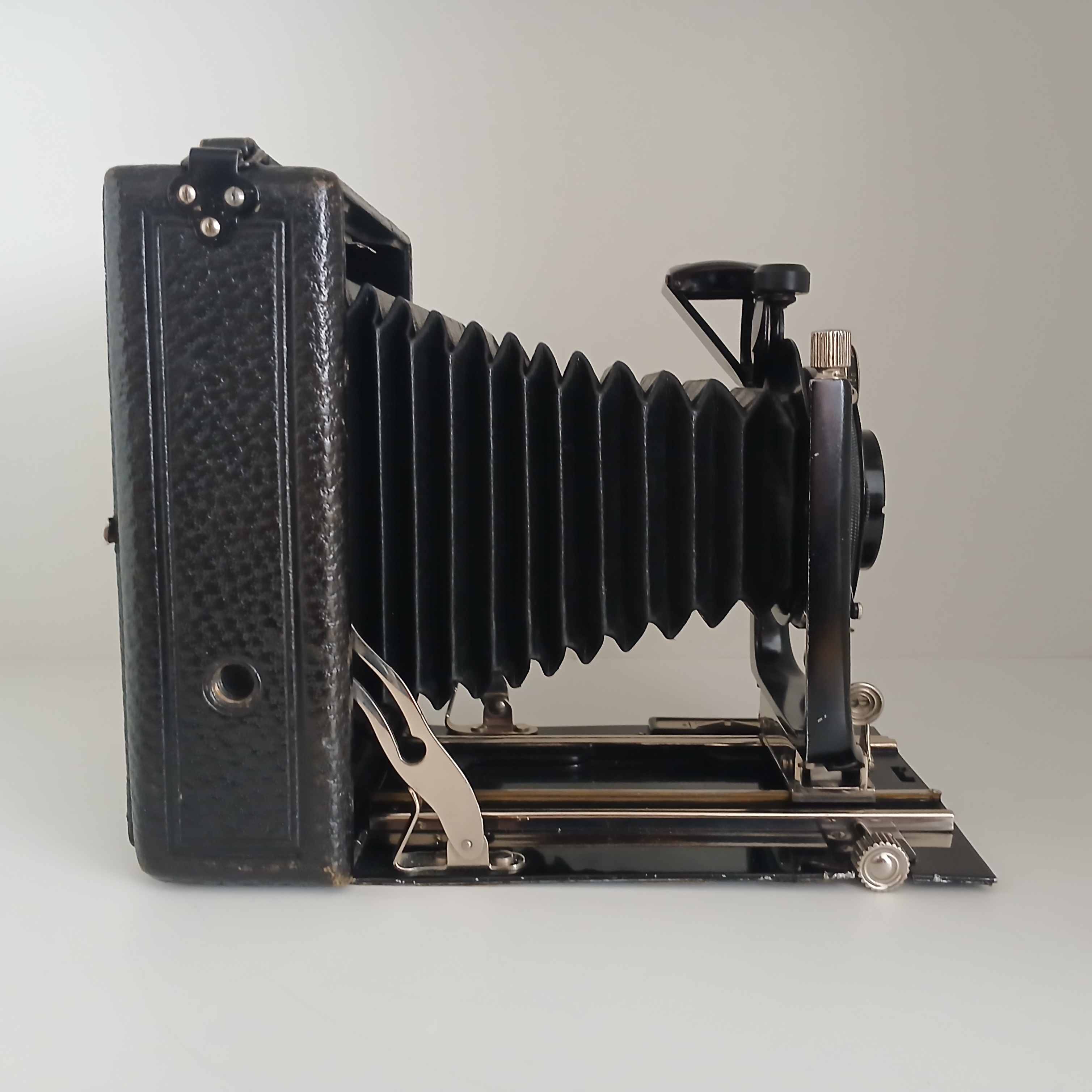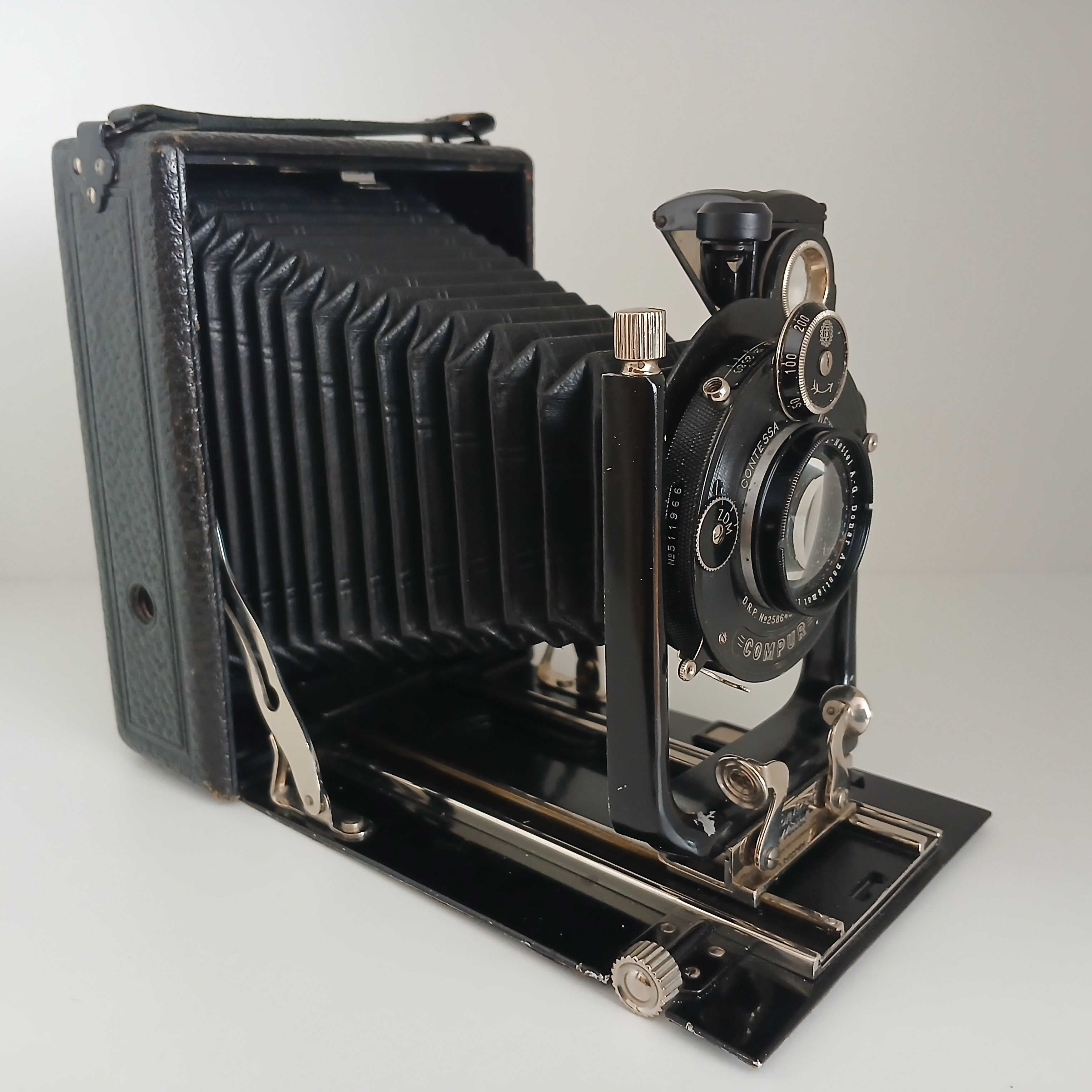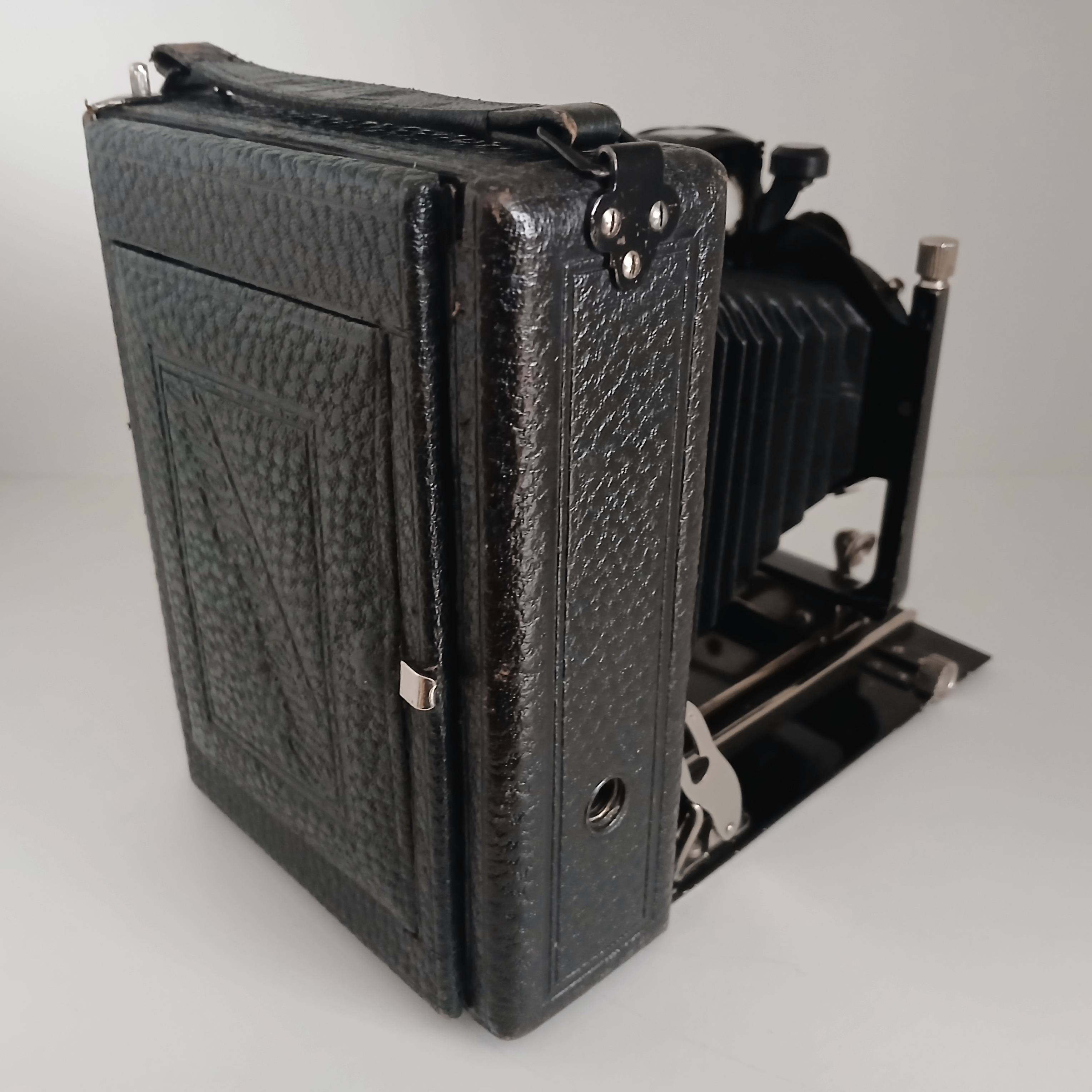 Als ich die Kamera kaufte, versicherte mir der Verkäufer, dass es sich um eine „Donata” handele, obwohl ich anhand des Fotos den Eindruck hatte, dass es sich um eine „Altura” handelte. Zu meiner Überraschung war sie jedoch weder das eine noch das andere. Äußerlich ist sie eindeutig eine Contessa-Nettel-Kamera und macht auch keinen Hehl daraus, eine typische Plattenkamera für das Format 9x12 mit einem Gehäuse aus Holz, aber das Objektiv überraschte mich, eine „Donar”, die wie ein anastigmatisches Triplet aussah, aber unbekannter Herkunft war.