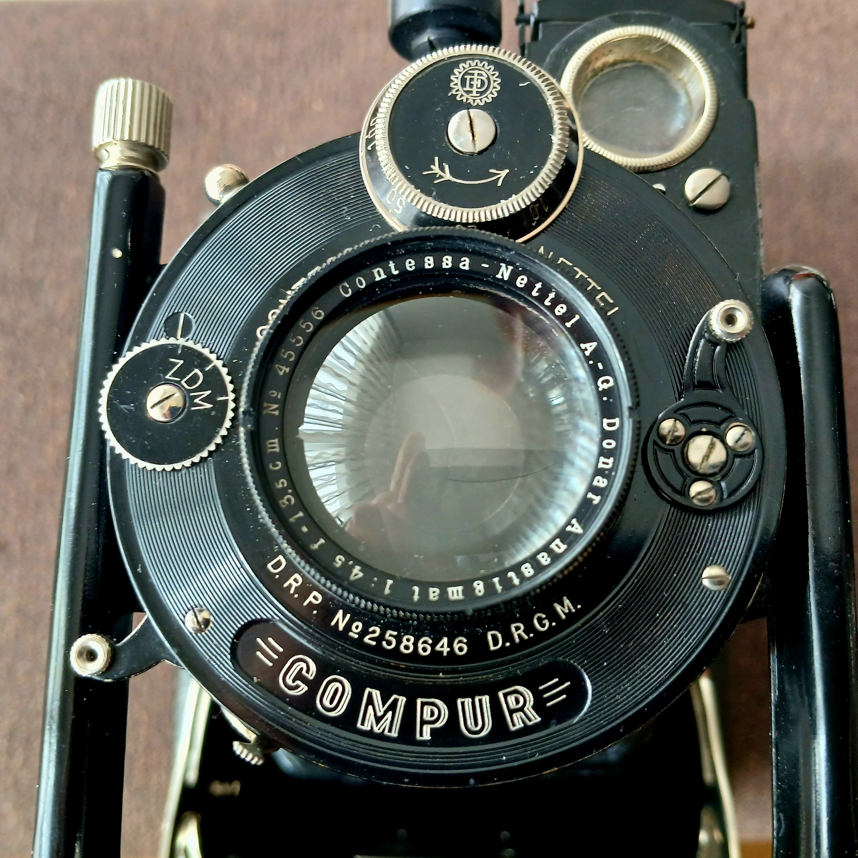 Die Recherchen sowohl im Internet als auch in den relativ wenigen Unterlagen, die ich über Contessa, Nettel und Contesa-Nettel besitze, ergaben keinen Hinweis. Das Merkwürdigste ist vielleicht, dass der Trageriemen mit dem Namen „Donar” gekennzeichnet ist, woraus man schließen kann, dass dies der Name des Geräts war, wie es bei der Firma üblich war, und den ich natürlich in meinen herkömmlichen Unterlagen nicht finden kann. Die Seriennummer des Compur-Verschlusses lässt auf das Jahr 1922 schließen, wobei auch eine bedeutende Nummer des Objektivs angegeben ist.