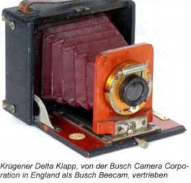 Die Kamera hat keinerlei Hinweise auf Krügener. Die Prägung "Busch Preis Camera" um einen siebenstrahligen Stern mit mittigem Dreieck auf der rechten Seite des Gehäuses verwirrten mich. Sie deutete auf Busch als Hersteller. Wie konnte das sein?