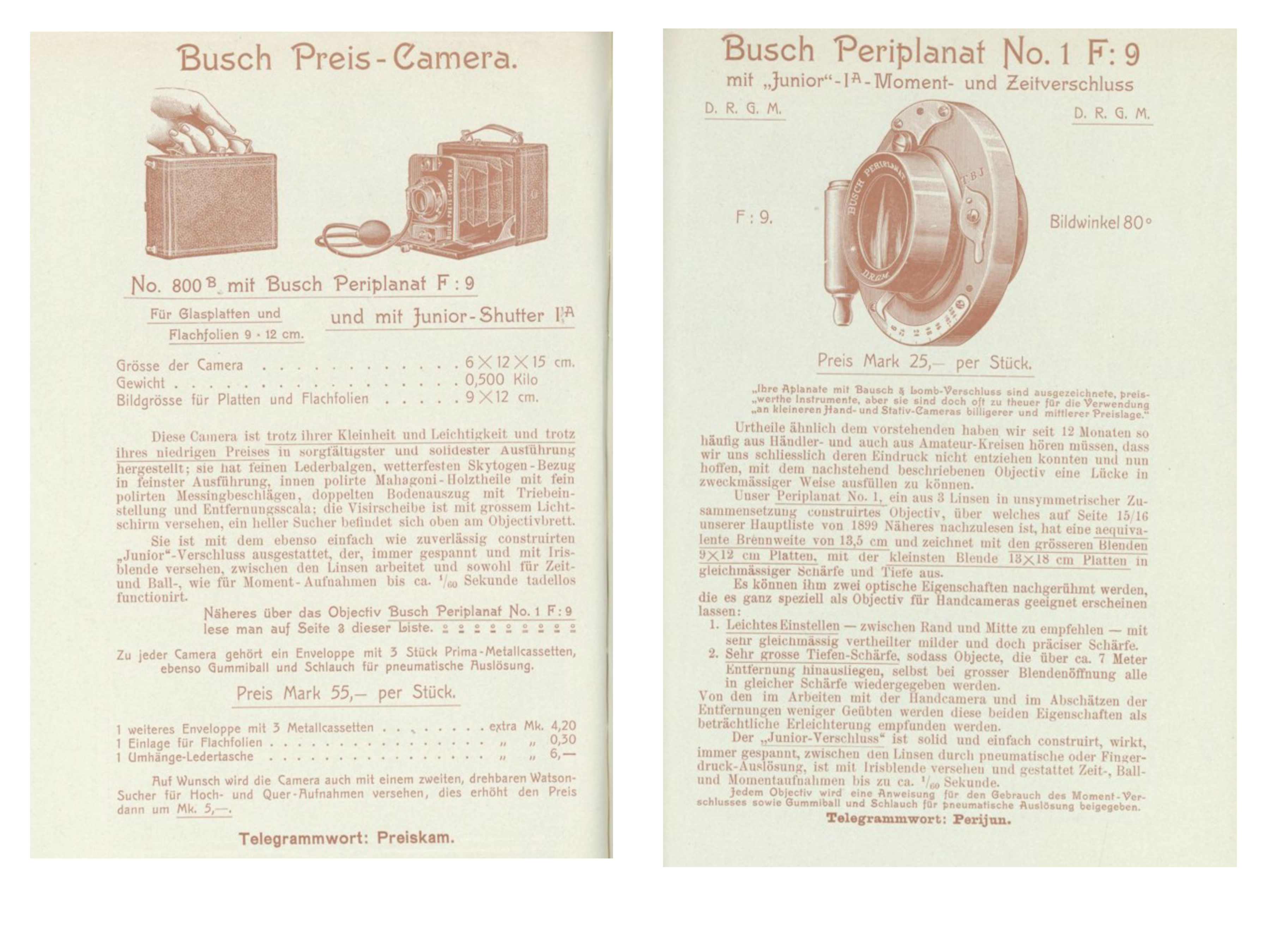 Daniel Sánchez hat mir Pressemitteilungen von 1901 zur Verfügung gestellt. 1901_photo_corresp_Busch_Preis_Kamera_00 = Photographische Correspondenz 1901 (ohne Monats- und Tageseingabe)