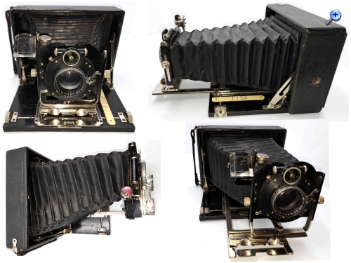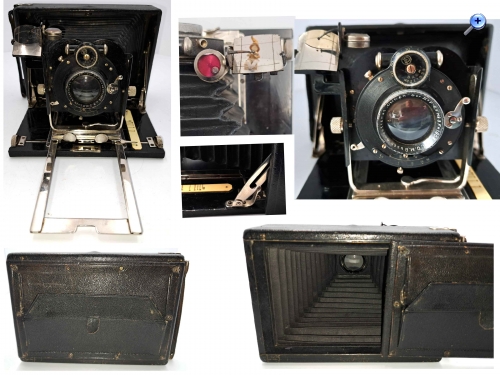 vielen Dank für die Werbeanzeigen. Das ist genau meine Kamera . Kannst du die Kamera irgendwie datieren? Die Linse ist - so ich erkennen kann - in Alumnium gefasst. In der unteren Werbeanzeige ist von einem Laufboden aus Aluminium die Rede, meine Kamera hat noch einen Holzlaufboden. Das, finde ich, macht den Charme dieser Kamera aus. Auf der ersten werbeanzeige ist meine Kamera mit Holzlaufboden dargestellt.