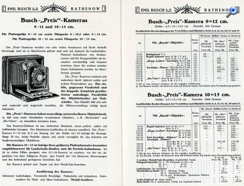 es wird eine Kamera der Gebrüder Herbst im Querformat 15x10, ausgestattet mit Omnar Objektiv und Sellarsucher von Emil Busch, als Preis- Kamera von Busch vertrieben. Leider fehlt die Prägung von Busch.