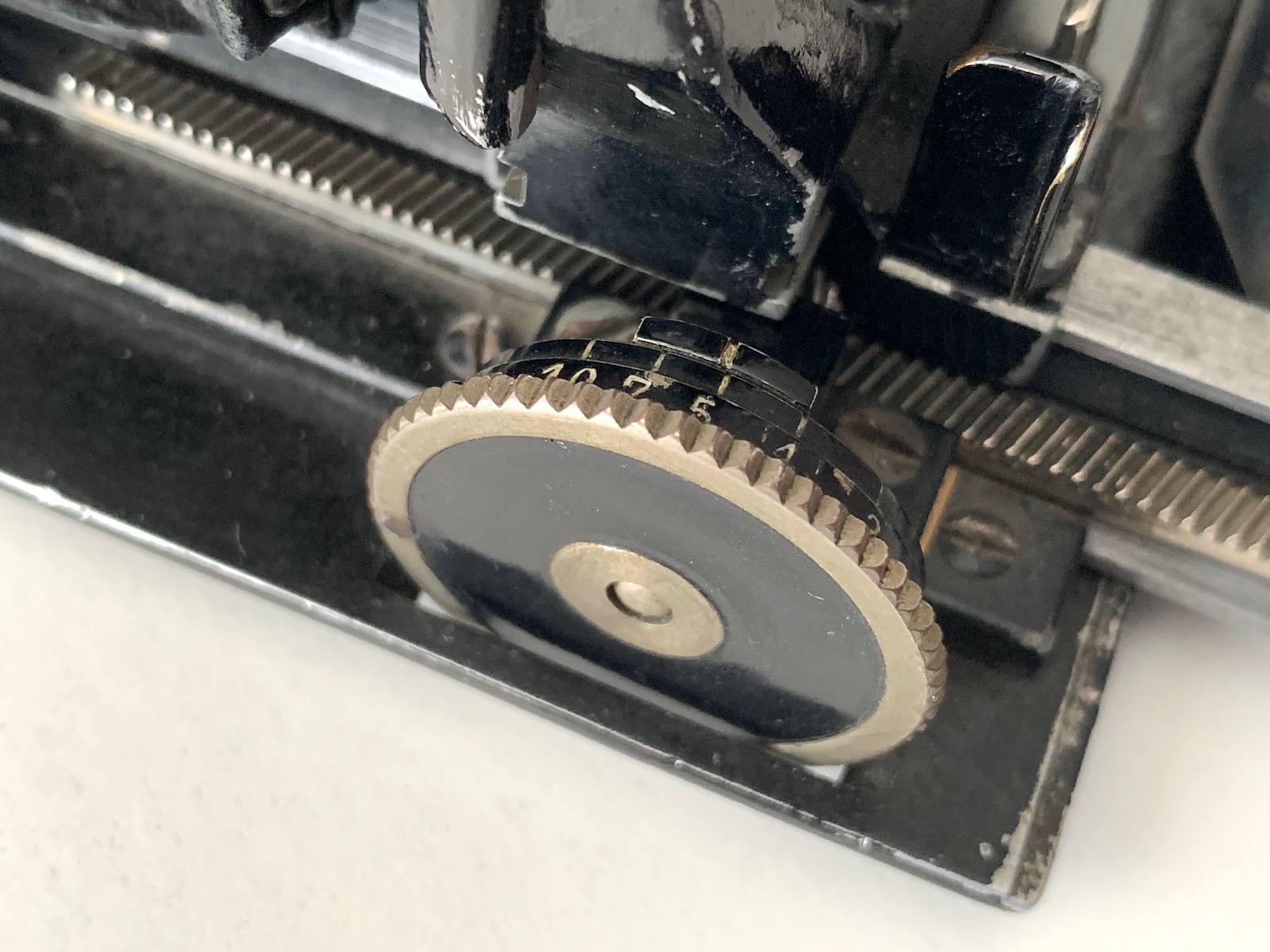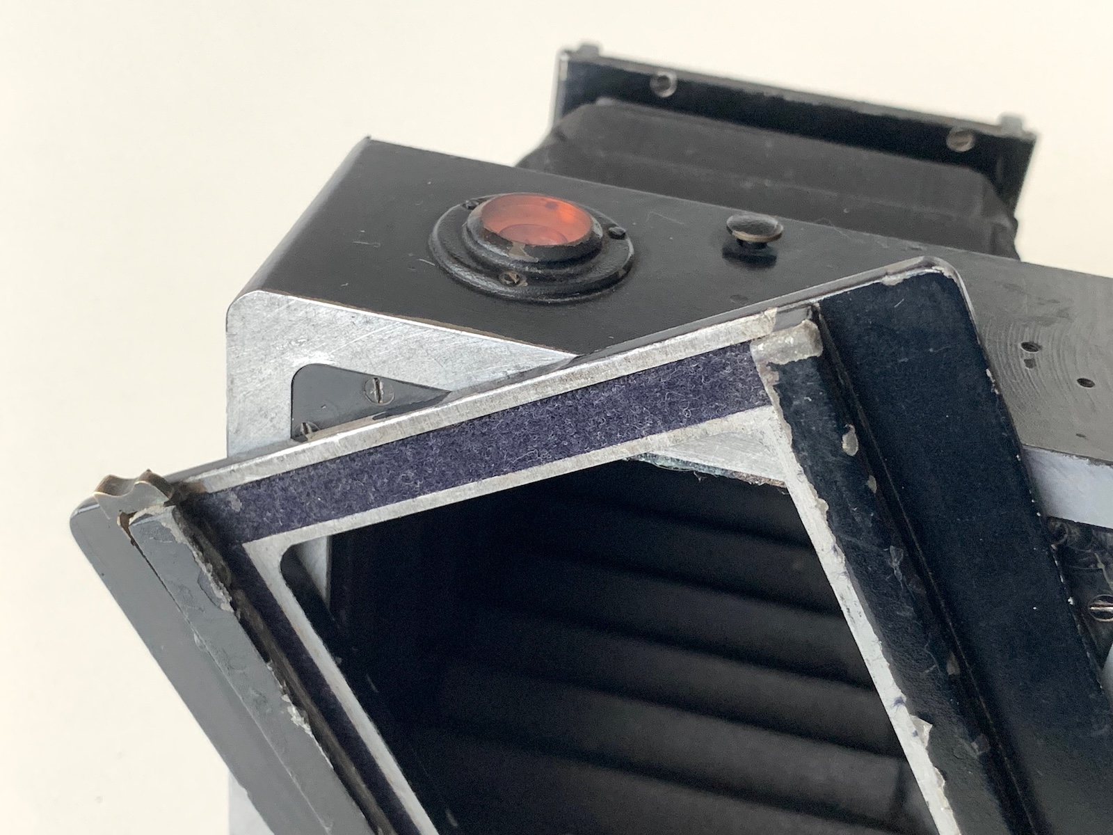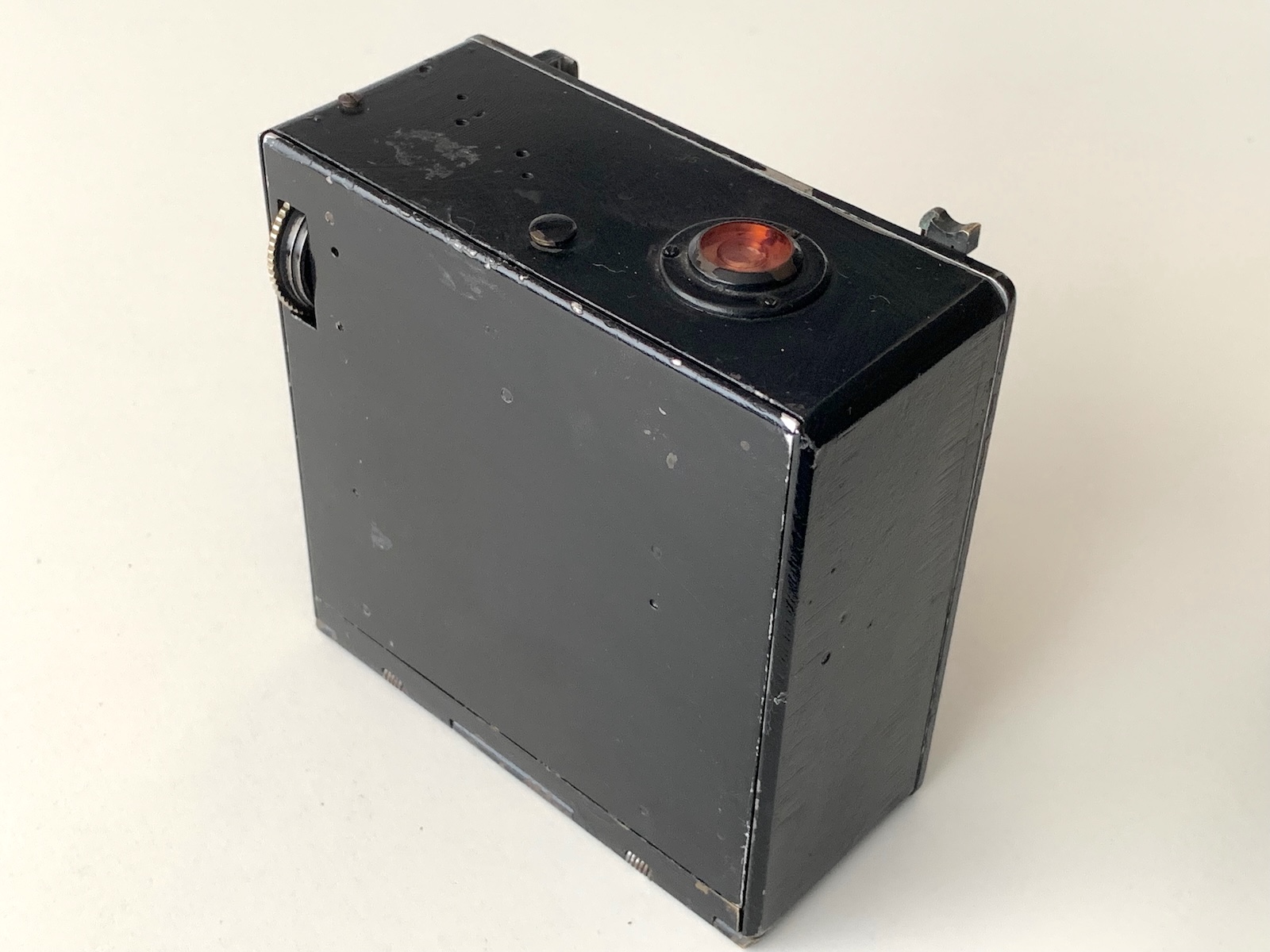Die große Fokustaste ist vielleicht das auffälligste Merkmal der Kamera. Es bleibt keineswegs unbemerkt und sollte sicherlich einen entscheidenden Hinweis auf den Hersteller bieten. Ich hatte ihn noch nie außerhalb einer Perka-Kamera gesehen. Es muss eine Beziehung zwischen Perka und Linhof gegeben haben. Aber Rhaco war vor allem ein Händler, und selbst wenn es einige teilweise hergestellte oder fast fertig montierte Geräte fertigstellen könnte, bezweifle ich, dass es seine eigenen Geräte vollständig herstellen könnte, insbesondere eines dieser Merkmale.