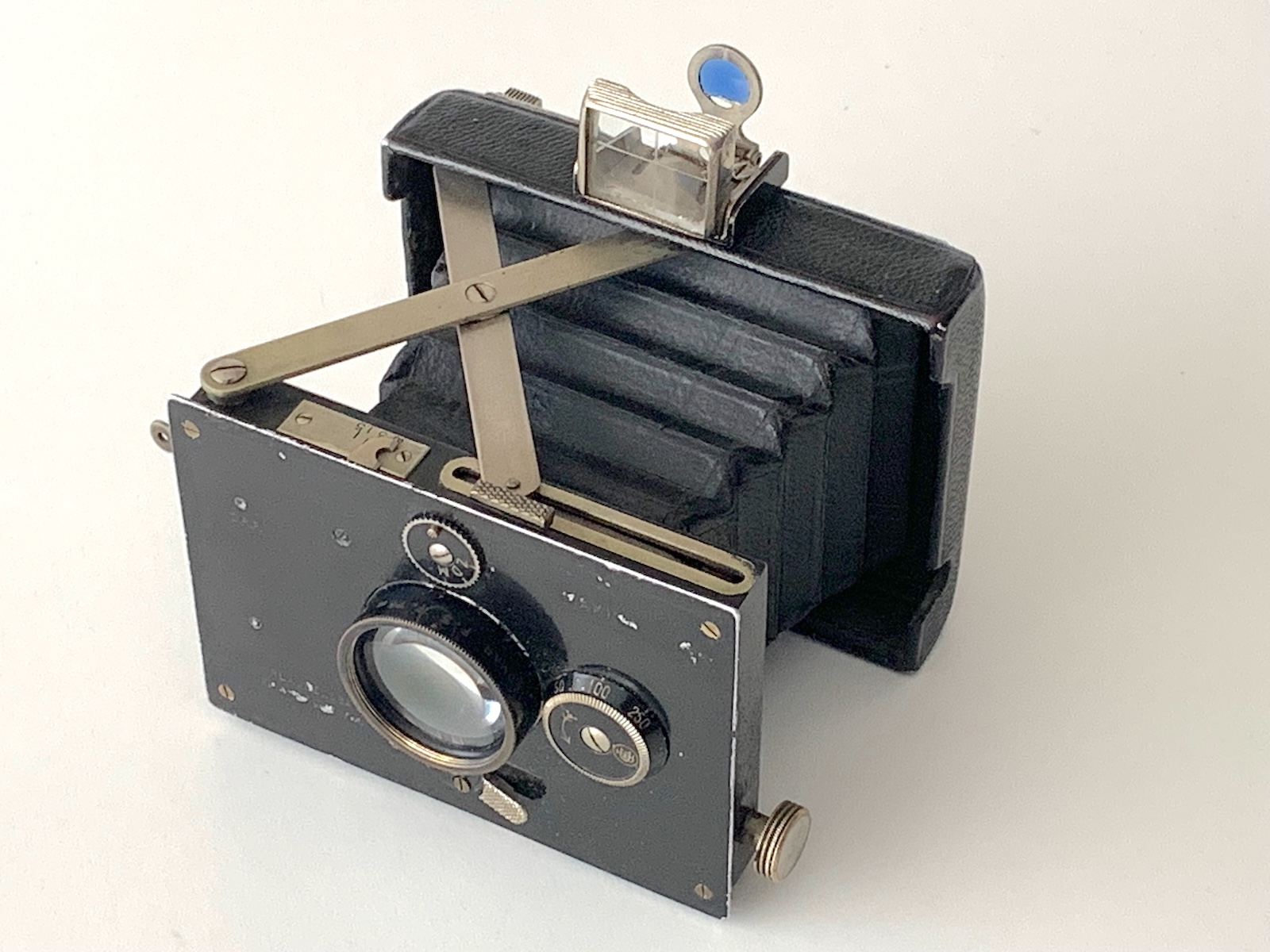 besonders in den ersten zwei Jahrzehnten des 20. Jahrhunderts waren Spreizenkameras im „Westentaschenformat“ 4,5x6 sehr beliebt. Den Anfang im gehobenen Segment markierte 1908 die Westentaschen-Tenax von C. P. Goerz (--> https://blende-und-zeit.sirutor-und-comp...&thread=281), es folgten Zulauf mit der Bébé (--> https://knippsen.blogspot.com/search?q=zulauf) sowie weitere Hersteller, darunter Plaubel. Die Frankfurter Firma brachte 1912 die hier vorzustellende Makina 4,5x6 – in Sammlerkreisen auch als ‚Baby-Makina‘ bezeichnet – auf den Markt, nachdem schon 1911 eine Stereo-Version 4,5x10,7 erschienen war. (Die größere und weiter verbreitete Version in 6,5x9 kam erst 1919.)