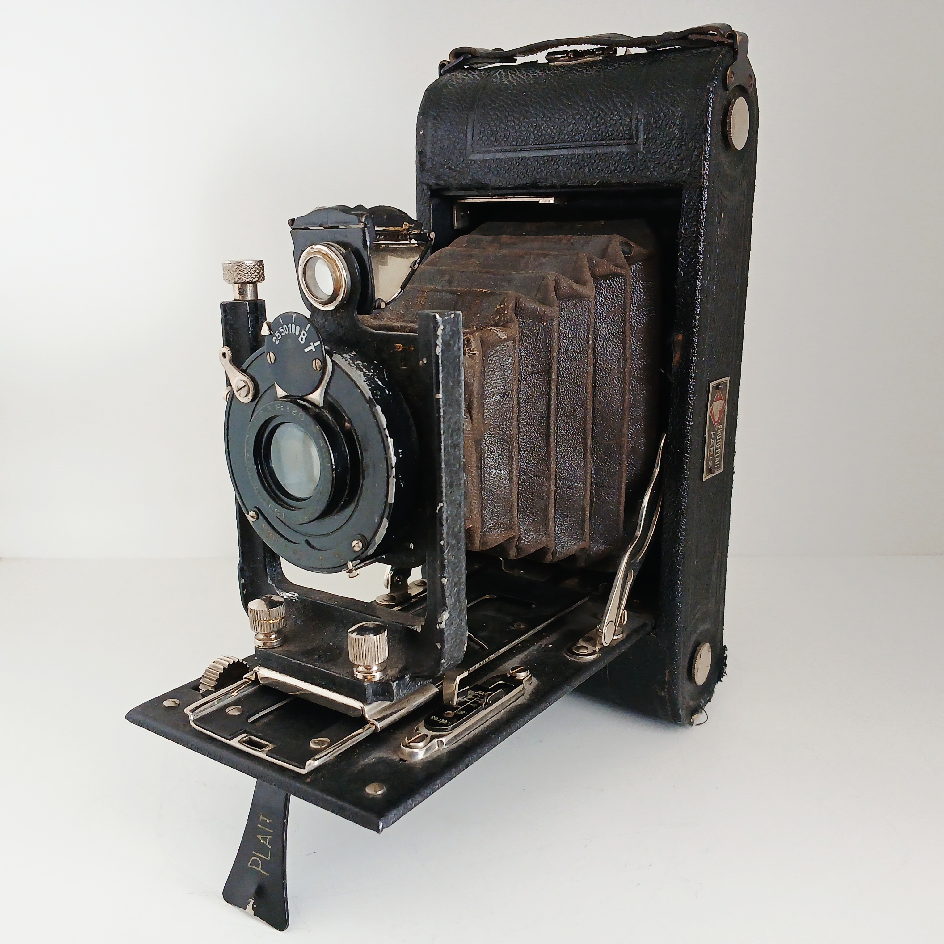 Die bekannteste Serie von Roll-Film-Kameras von Photo-Plait war die 'Platos-Film'. Dieses Modell wäre jedoch eher eine Studio-Film 1A-Kamera, die wiederum in Wirklichkeit eine Demaria Lapierre Caleb-Kamera ist.Film S. Zwischen beiden Serien gibt es viele gemeinsame Merkmale, aber die vorgestellte wäre einfacher. Die Platos-Films waren von 1925 bis 1933 erhältlich und die Studio-Film von 1926 bis 1931. Auf der bekannten Webseite 'collection appareils' findet man problemlos genügend Katalogbilder dieser Geräte