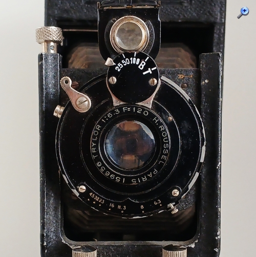 Die Linse ist ein anastigmatisches Ziel Trylor f1:6,3/120mm H: Roussel. Aber der Verschluss ist etwas geheimnisvoller, er hat weder den Namen noch das Logo seines Herstellers, was die Tür zur Spekulation öffnet, obwohl er auf den ersten Blick ein Vario ist. Der DL-Katalog erwähnt den 'Typ II' von Verschluss, zu denen speziell der Vario gehört. Allerdings ist der Photo-Plait-Katalog mehrdeutig und spricht vom Verschluss 'Platos' ohne weitere Referenz, der über die B- und T-Modi sowie drei Geschwindigkeiten verfügt, sodass er als 'Typ Vario' klassifiziert werden könnte. Nun gut, da der französische Hersteller Gitzo zu dieser Zeit einige Stopfen produzierte, die den Vario äußerlich ähnlich waren, wäre es nicht völlig ausgeschlossen, dass es sich um einen Gitzo handelte. Und tatsächlich würde ich mich aufgrund der abgeflachten Form der Drucktaste für Gitzo entscheiden. Dennoch, Nur seine Öffnung, um die Anordnung der Maschinen zu überprüfen, würde diesen kleinen Zweifel beseitigen.
